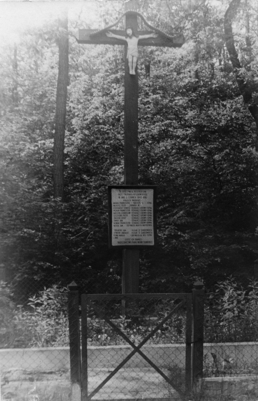 Archiwalne zdjęcie symbolicznego upamiętnienia przy drodze Ispina – Chobot, w miejscu zamordowania 9 mężczyzn. Fot. ze zbiorów IPN -