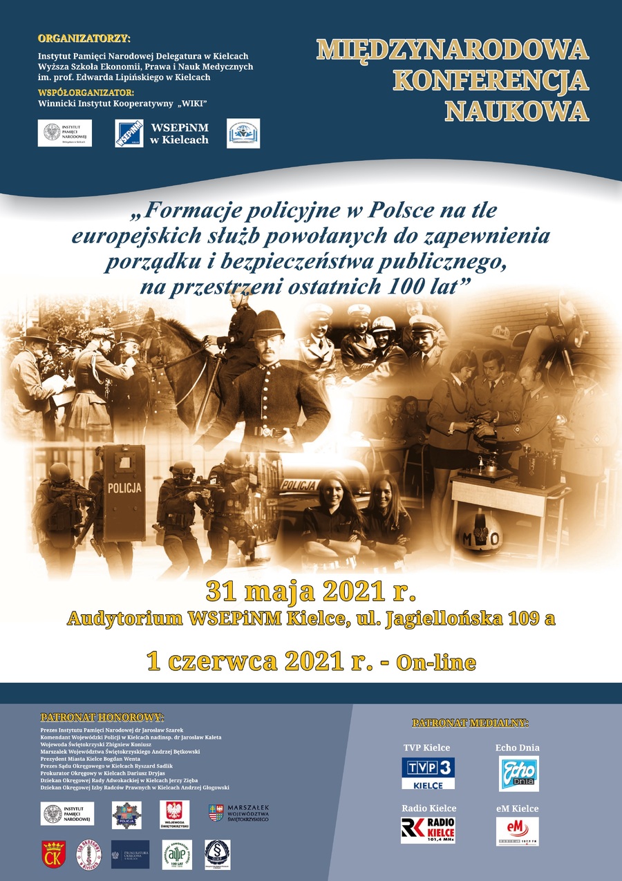 Międzynarodowa konferencja naukowa „Formacje policyjne w Polsce na tle europejskich służb powołanych do zapewnienia porządku i bezpieczeństwa publicznego, na przestrzeni ostatnich 100 lat” – Kielce, 31 maja – 1 czerwca 2021