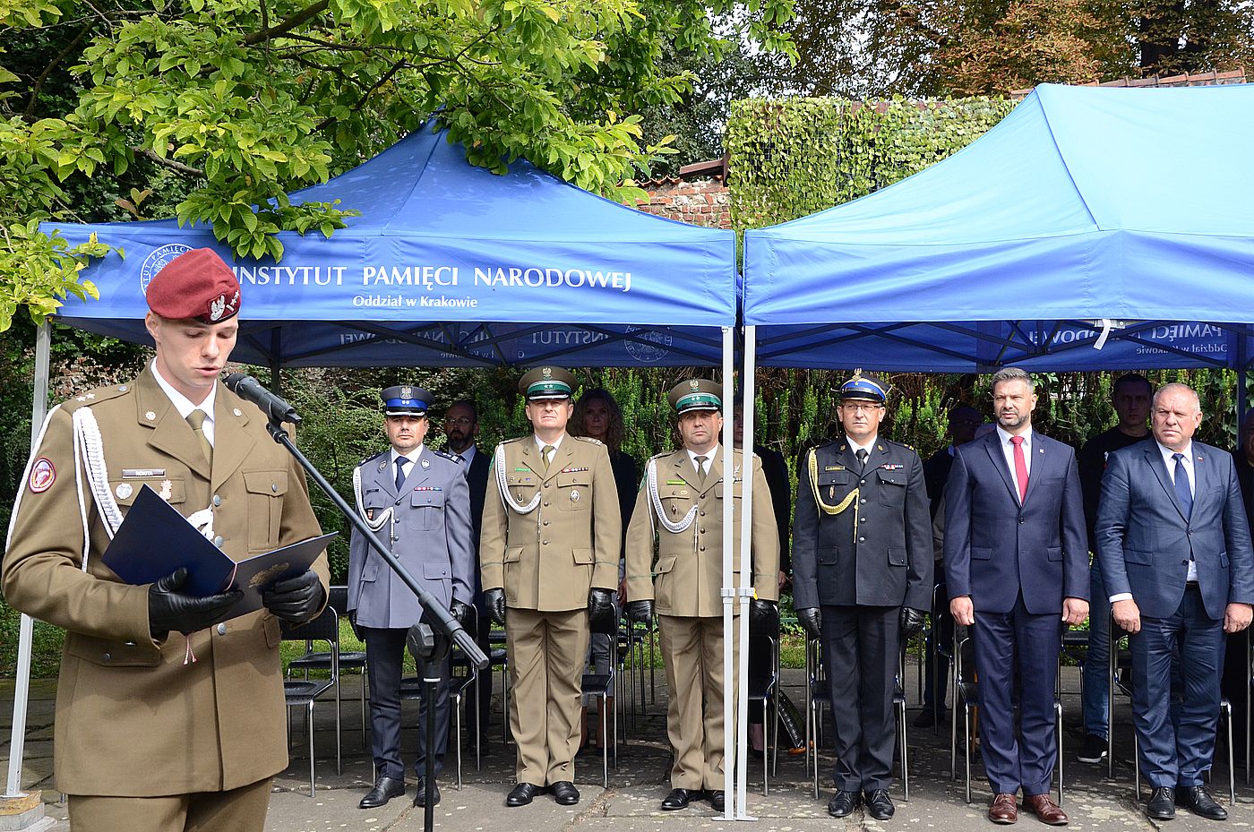 Na uroczystości gościliśmy Świadka Historii, 95-letniego por. Wacława Szaconia „Czarnego”, żołnierza Narodowej Organizacji Wojskowej i Armii Krajowej, działacza Zrzeszenia WiN. Obecni byli także dyrektor krakowskiego IPN dr hab. Filip Musiał, wicewojewoda małopolski Ryszard Pagacz, przewodniczący Sejmiku Województwa Małopolskiego prof. Jan Duda, dyrektor Muzeum Archeologicznego w Krakowie dr hab. Jacek Górski, prezes Stowarzyszenia Odra-Niemen Oddział Małopolski Tomasz Konturek, dyrektor Muzeum AK w Krakowie dr Marek Lasota, dyrektor departamentu kultury Urzędu Marszałkowskiego Monika Gubała, a także przedstawiciele służb mundurowych i poczet sztandarowy Podhalańskiej Grupy Rekonstrukcji Historycznej Zgrupowania Partyzanckiego „Błyskawica”.