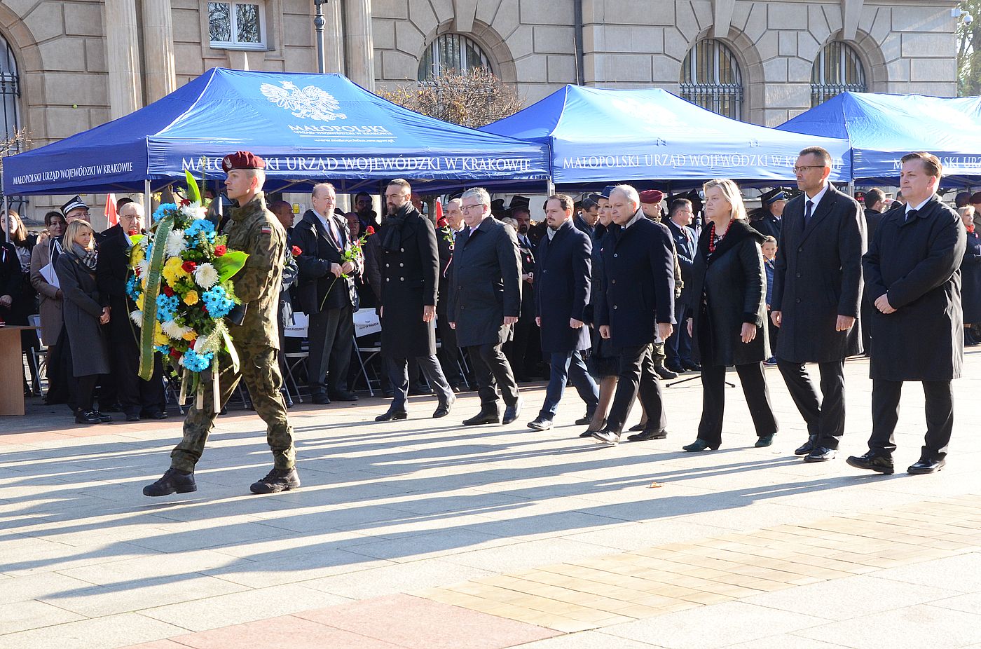 Po mszy świętej w intencji ojczyzny, odprawionej w katedrze wawelskiej przez metropolitę krakowskiego abp. Marka Jędraszewskiego, zebrani przeszli pod Krzyż Katyński na pl. o. Studzińskiego, gdzie złożono kwiaty. Potem uroczystości przeniosły się przed Grób Nieznanego Żołnierza na pl. Matejki. Odczytano Apel Pamięci zwieńczony salwą honorową. Wręczono odznaczenia państwowe i akty nadania obywatelstwa polskiego. Na koniec pododdziały zaprezentowały się w uroczystej defiladzie. W uroczystościach przygotowanych przez wojewodę małopolskiego uczestniczyły tysiące krakowian i turystów, kombatanci, parlamentarzyści, dyplomaci, przedstawiciele władz, partii politycznych, służb mundurowych i organizacji społecznych.