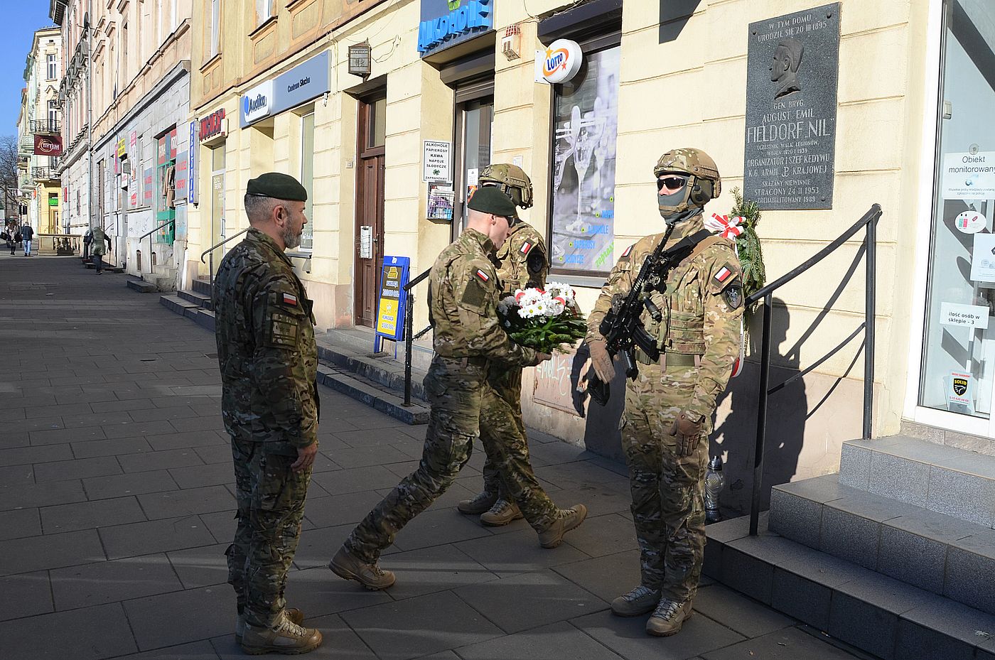 Dyrektor krakowskiego IPN dr hab. Filip Musiał i ppłk Michał Łygan z Jednostki Wojskowej Nil złożyli kwiaty pod tablicą pamięci gen. Fieldorfa, umieszczoną na budynku przy ul. Lubicz 32 w Krakowie. Przyszły dowódca Kierownictwa Dywersji KG AK urodził się w tej kamienicy. Modlitwę zmówił o. Jerzy Pająk, kapelan Związku Żołnierzy AK i środowisk kombatanckich.