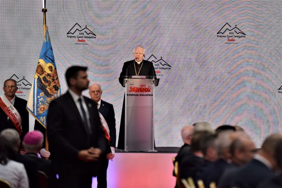 – Przynajmniej dwa razy w XX wieku nad polskim narodem i nad Polską wyszło piękne, promieniste słońce: w roku 1918, gdy Polacy swoim czynem bojowym, zbrojnym, politycznym i dyplomatycznym odzyskiwali niepodległość, ale także w sierpniu 1980 roku, gdy rodził się NSZZ „Solidarność”. Dzięki słońcu „Solidarności” cały świat mógł zobaczyć cechy i wartości ważne dla polskiego narodu: wielkie pragnienie wolności, gotowość do niesienia brzemion innych, upominanie się o godność i o solidaryzm społeczny (...)