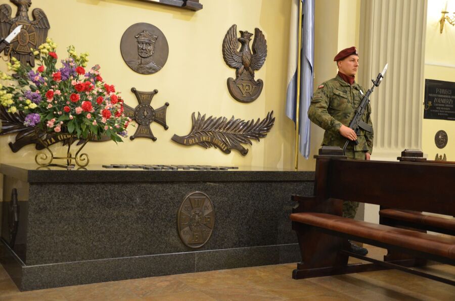 W czasie I wojny światowej gen. Józef Haller dowodził m.in. II Brygadą Legionów Polskich, a potem Błękitną Armią, sformowaną we Francji z polskich ochotników. Zajmował dla Polski Pomorze Gdańskie. To on dokonał symbolicznych zaślubin z Bałtykiem, wrzucając pierścień w morskie fale. W 1920 r., w krytycznym momencie wojny polsko-bolszewickiej, gdy ważyły się losy RP, stanął na czele Armii Ochotniczej. Swymi czynami inspirował licznych malarzy, muzyków i poetów. Zmarł 4 czerwca 1960 r. na emigracji w Londynie. Prochy sprowadzono z Anglii do Krakowa w 1993 r.