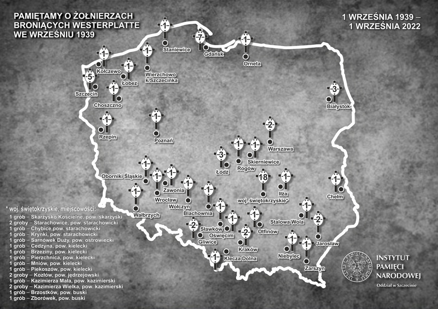 W woj. świętokrzyskim znanych jest 35 grobów westerplatczyków. W Małopolsce znajduje się pięć. Przedstawiciele Oddziału IPN w Krakowie i kieleckiej delegatury odwiedzili 1 września 2022 r. wiele z tych miejsc. Zapalając znicze złożyliśmy hołd bohaterom pierwszej bitwy II wojny światowej.