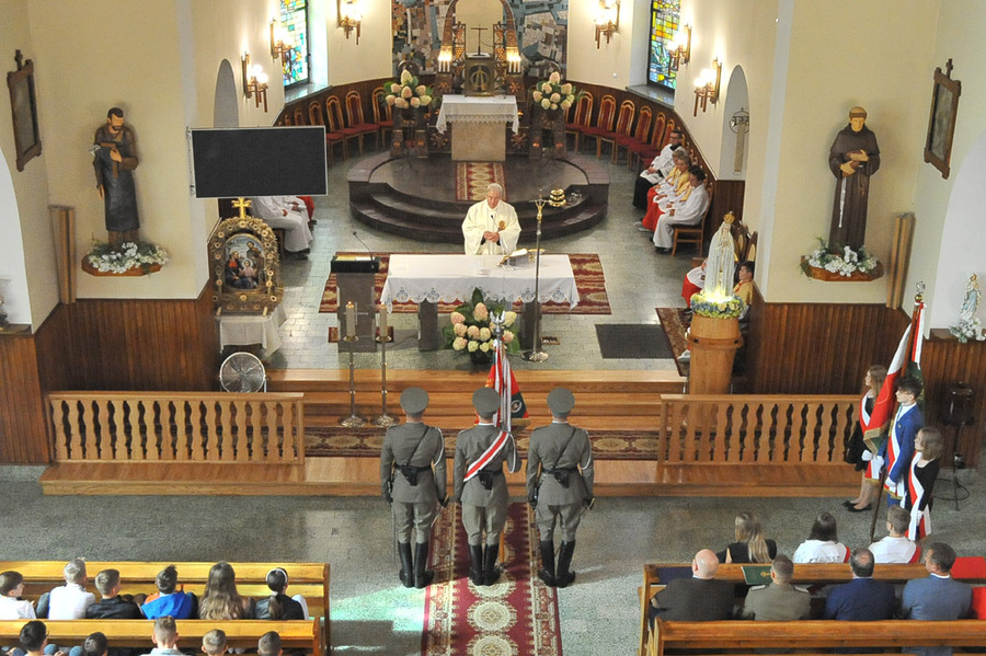 Druga część uroczystości rozpoczęła się o godzinie 10.30 w kościele pod wezwaniem Świętego Sebastiana. Proboszcz parafii, ks. Ryszard Pawlus odprawił uroczystą mszę w intencji poległych żołnierzy Wojska Polskiego i zamordowanych w dniu 3 września 1939 roku mieszkańców Skomielnej Białej. Na miejsce przybyli także funkcjonariusze Karpackiego Oddziału Straży Granicznej z Nowego Sącza z pocztem sztandarowy oraz delegacja Orkiestry Reprezentacyjnej Straży Granicznej.