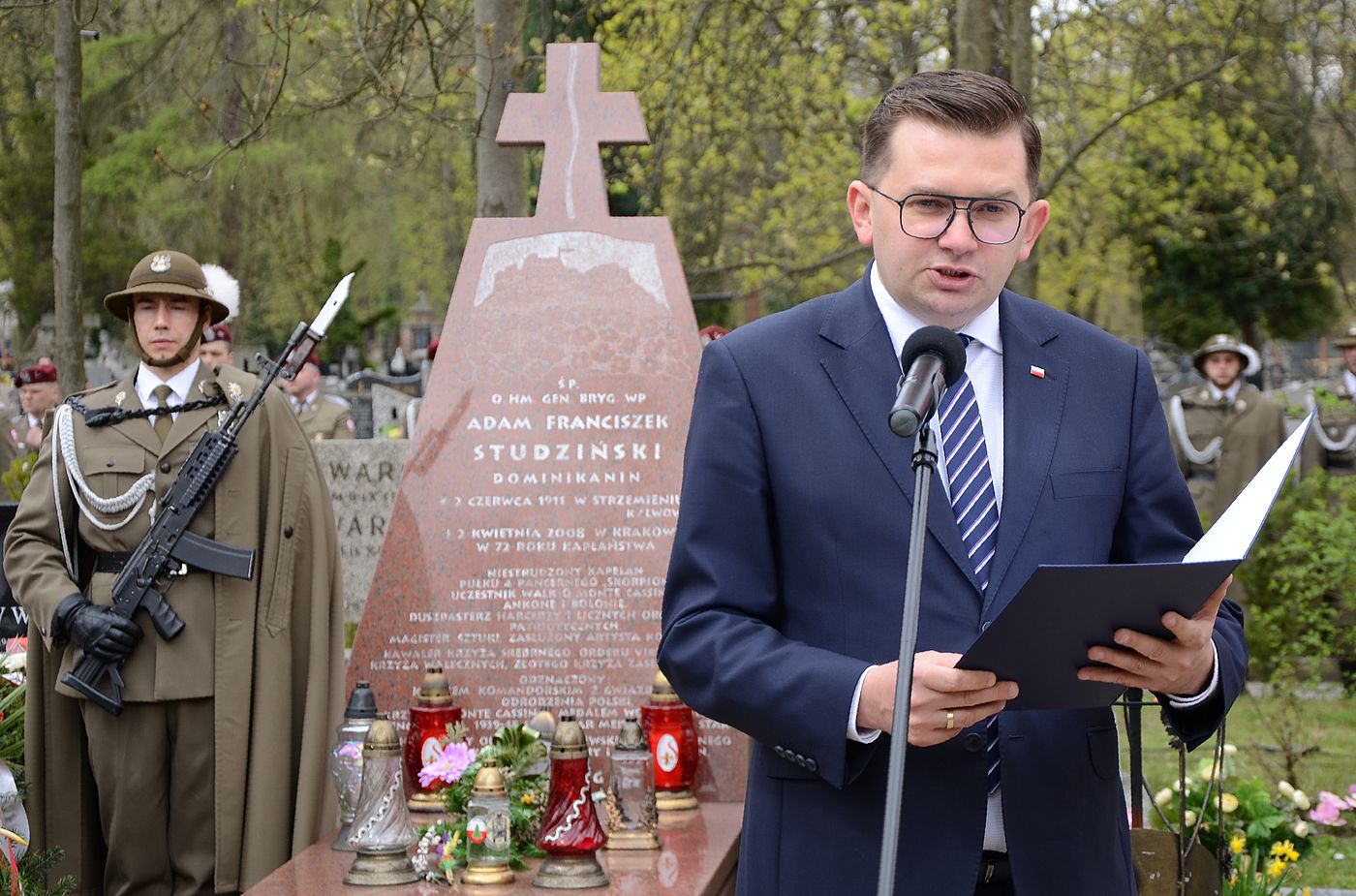 Podczas ceremonii prezesa IPN reprezentował zastępca dyrektora oddziału Instytutu w Krakowie dr Michał Wenklar. Po mszy świętej w kościele Garnizonowym delegacje złożyły wieńce na grobie o. Studzińskiego w Alei Zasłużonych cmentarza Rakowickiego. Organizatorami uroczystości byli Urząd ds. Kombatantów i Osób Represjonowanych, Centrum Operacji Lądowych – Dowództwo Komponentu Lądowego i Stowarzyszenie Ułana Karpackiego. W imieniu prezydenta minister Jan Józef Kasprzyk wręczył Janowi Sroce Medal Stulecia Odzyskanej Niepodległości, a medalem Pro Bono Poloniae udekorował sztandar Niezależnego Związku Harcerstwa „Czerwony Mak” im. Bohaterów Monte Cassino ze Skawiny.