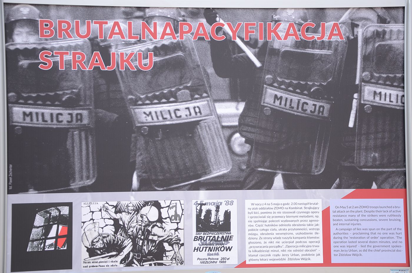 Mimo prób negocjacji pomiędzy dyrekcją kombinatu, a strajkującymi robotnikami, prowadzonych za pośrednictwem delegacji Episkopatu, w nocy z 4 na 5 maja 1988 r. strajk został brutalnie spacyfikowany przez oddziały ZOMO i brygady antyterrorystyczne. Pomimo zastosowanej przez władze komunistyczne przemocy, hutnicy nie ugięli się i podejmując strajk absencyjny doprowadzili do zwolnienia części z aresztowanych w trakcie pacyfikacji przywódców protestu.