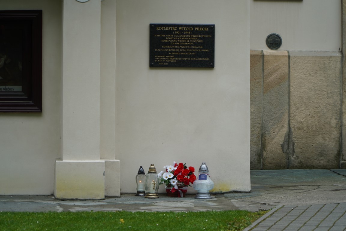 Radom, pod tablicą upamiętniającą rotmistrza Witolda Pileckiego umieszczoną na budynku Zespołu Szkół Samochodowych w Radomiu, który jest patronem tej szkoły.
