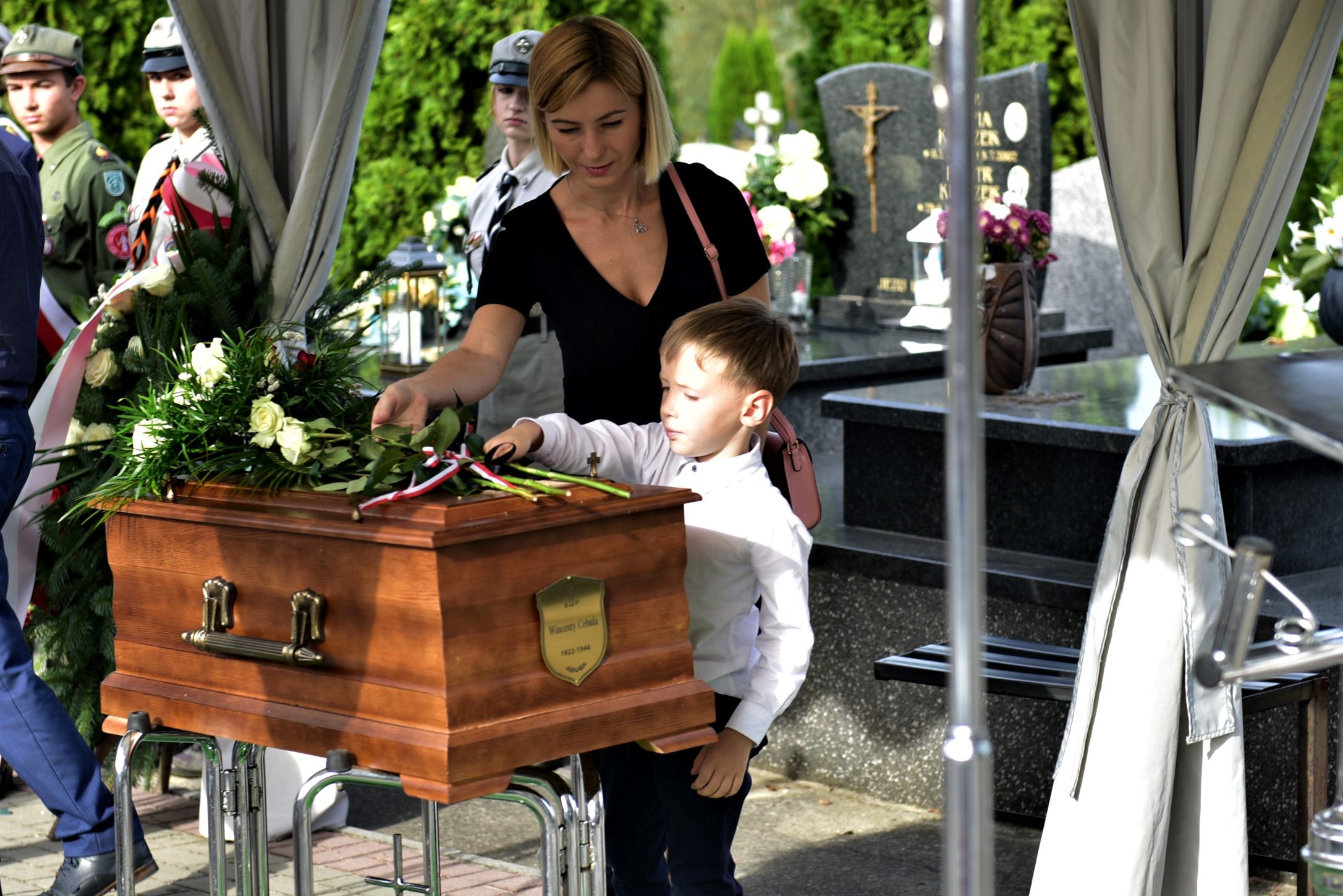 Po zakończeniu mszy św. odprowadzono szczątki żołnierza na cmentarz parafialny. Na koniec uroczystości dr Michał Wenklar przekazał na ręce rodziny portret Wincentego Cebuli.