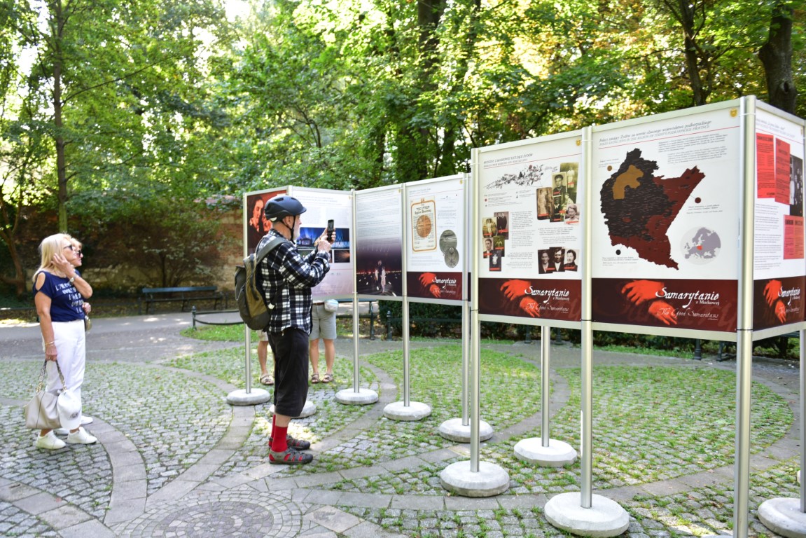 Ekspozycja składa się z około 20 plansz, prezentujących m.in. dokumenty i zdjęcia ilustrujące historię rodziny Ulmów oraz życie polskiej i żydowskiej społeczności Markowej. Przedstawione zostały także realia okupacji niemieckiej w Polsce, podczas której każdemu, kto pomagał Żydom, groziła kara śmierci. Rozpoczynając opowieść od tragicznej historii rodziny Ulmów, autor opisuje kolejne przykłady ratowania Żydów w Markowej, gdzie Polacy ocalili życie 21 osobom. Ukazuje również skalę takiej pomocy w całym regionie. Wystawę zamykają dokumenty z procesu beatyfikacyjnego rodziny Ulmów oraz dyplom przyznający Wiktorii i Józefowi tytuł Sprawiedliwych wśród Narodów Świata.
