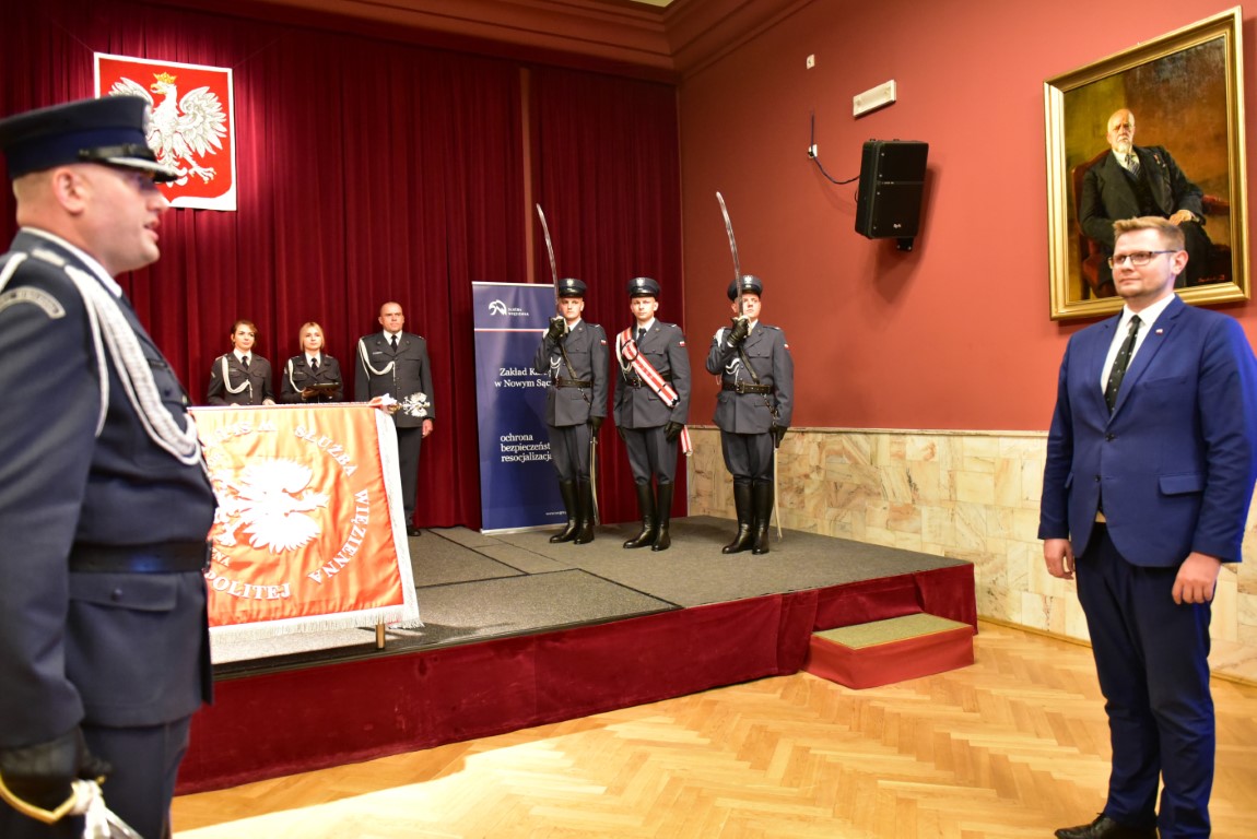 Dyrektor Radoń przekazała list gratulacyjny na ręce ppłk. Łukasza Chruślickiego, dyrektora Zakładu Karnego w Nowym Sączu.