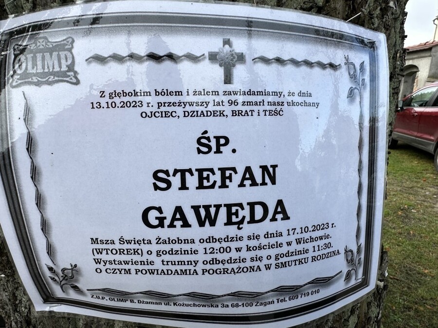 Msza pogrzebowa śp. kpt. Stefana Gawędy „Orlika” odbędzie się 17 października w kościele pw. św. Marcina w Wichowie o godz. 12.00.