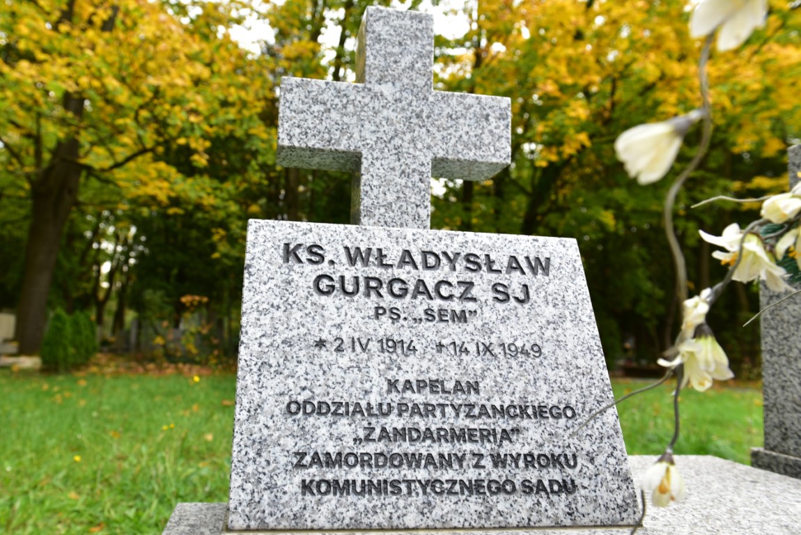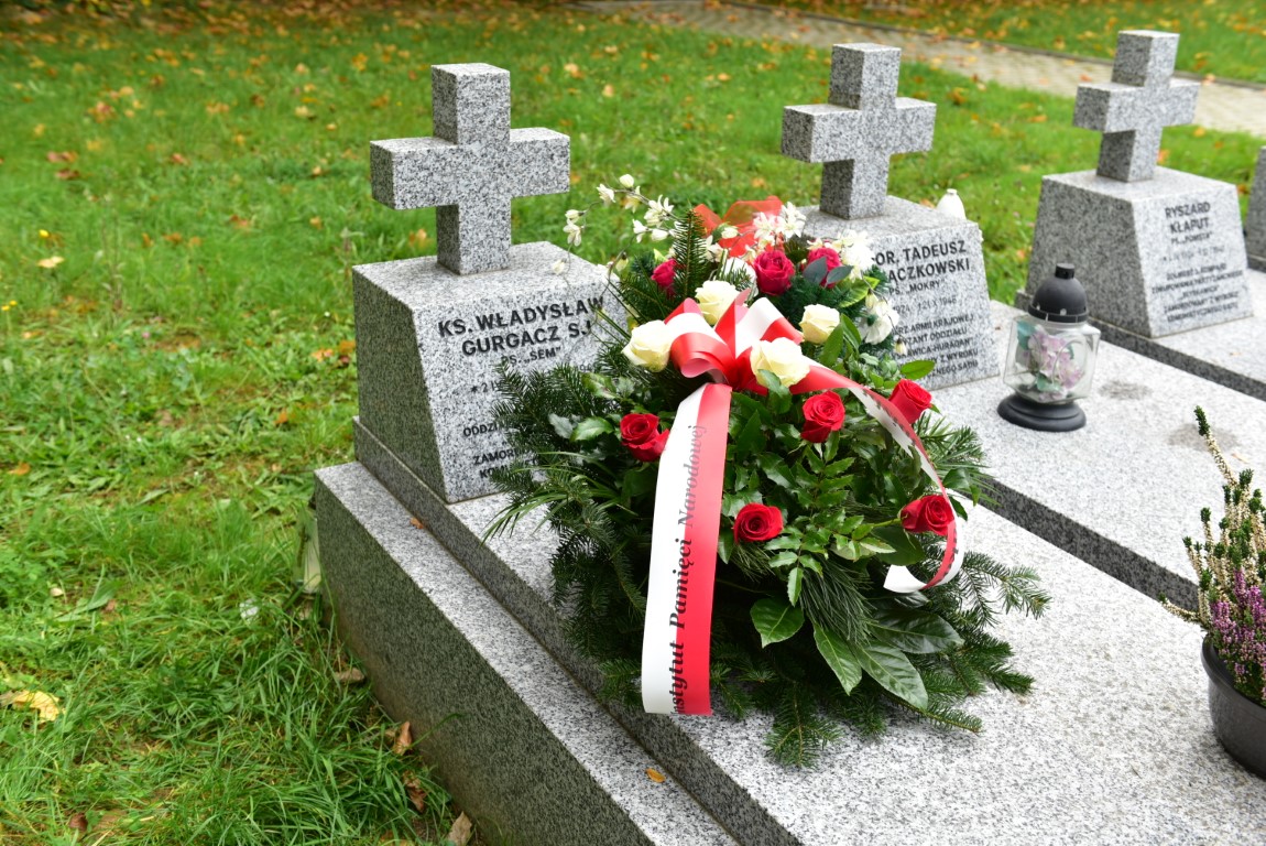 Dyrektor Radoń złożyła także wiązankę i zapaliła znicz na grobie ks. Władysława Gurgacza, kapelana Polskiej Podziemnej Armii Niepodległościowców, zgładzonego w 1949 r. w wiezieniu Montelupich. Mogiła niezłomnego jezuity, opiekuna duchowego działających na Sądecczyźnie żołnierzy podziemia niepodległościowego, znajduje się na cmentarzu Rakowickim.