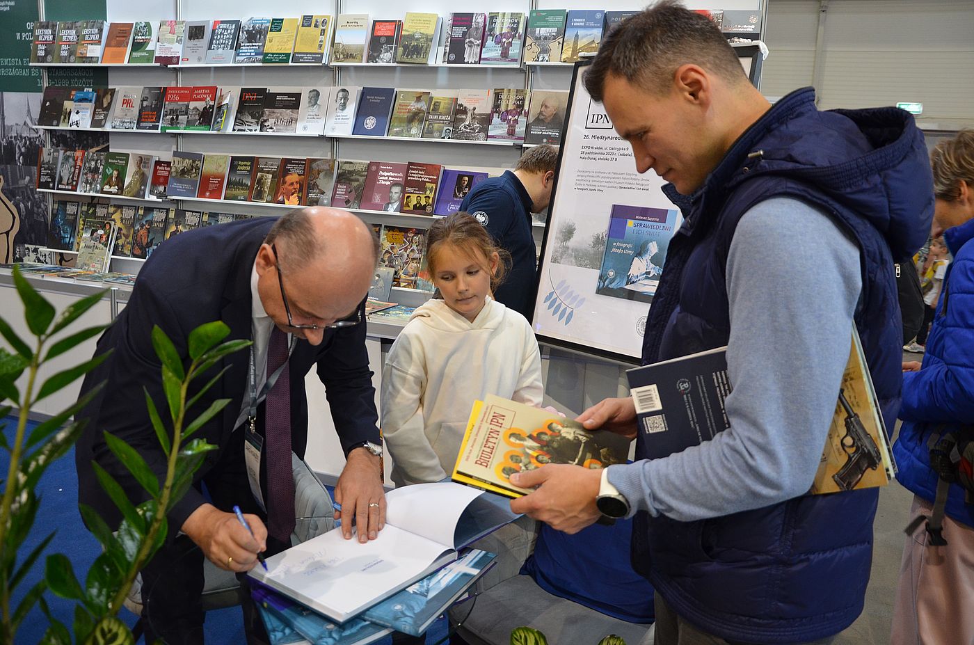 Po południu nasze stoisko odwiedził dr Mateusz Szpytma, zastępca prezesa IPN, popularyzator historii rodziny Ulmów, współtwórca i pierwszy szef Muzeum Polaków Ratujących Żydów w Markowej na Podkarpaciu, autor publikacji „Sprawiedliwi i ich świat w fotografii Józefa Ulmy”. Nabywcy książki mogli porozmawiać z autorem, zdobyć jego podpis i dedykację.