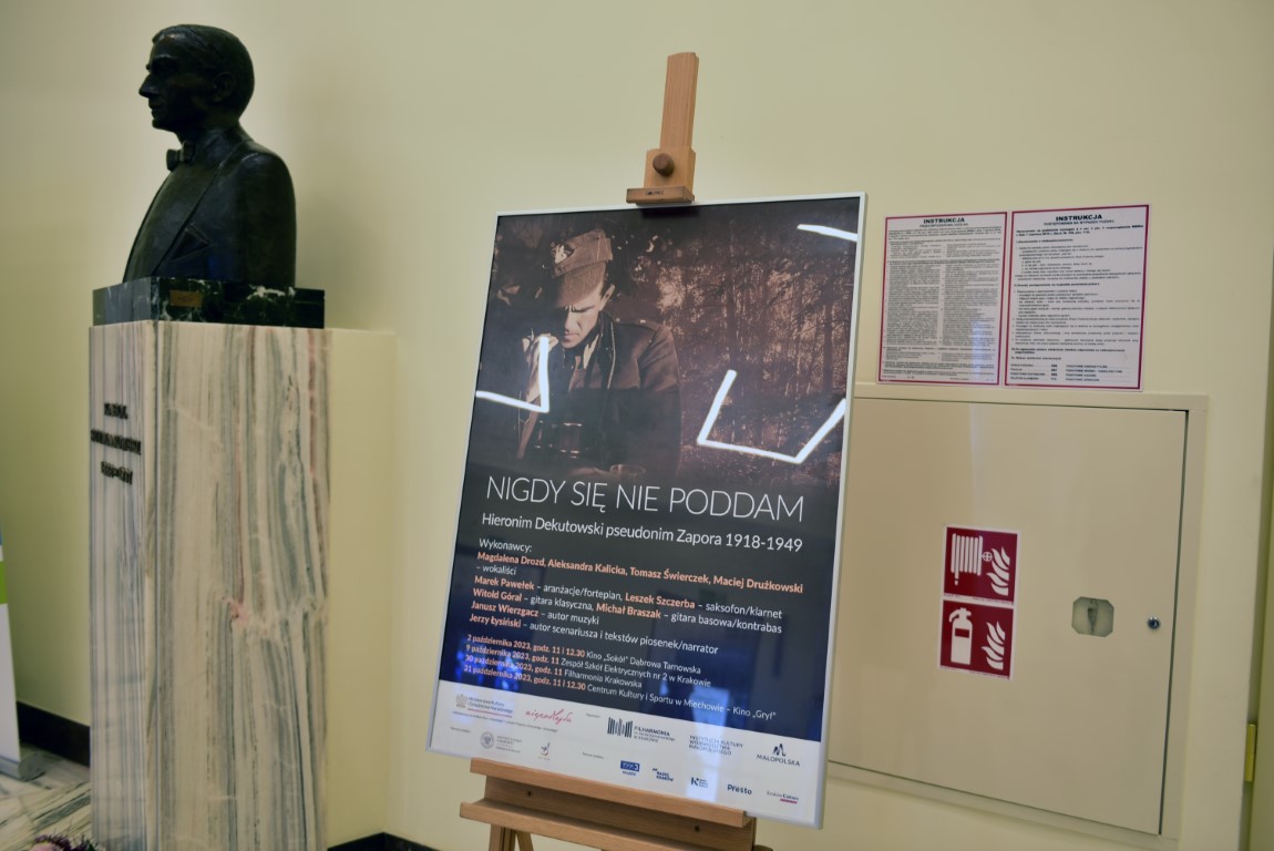Przy pełnej widowni Filharmonii im. Karola Szymanowskiego w Krakowie wybrzmiał dziś spektakl o mjr. Hieronimie Dekutowskim „Zaporze”. Uczniowie mieli okazję poznać historię tego niezłomnego żołnierza, którą opowiedziano za pomocą piosenek oraz słów opowieści. Spektakle stworzono w ramach projektu „Hieronim Dekutowski ps. Zapora – Nigdy się nie poddam”. Partnerem wydarzeń jest Instytutu Pamięci Narodowej Oddział w Krakowie.