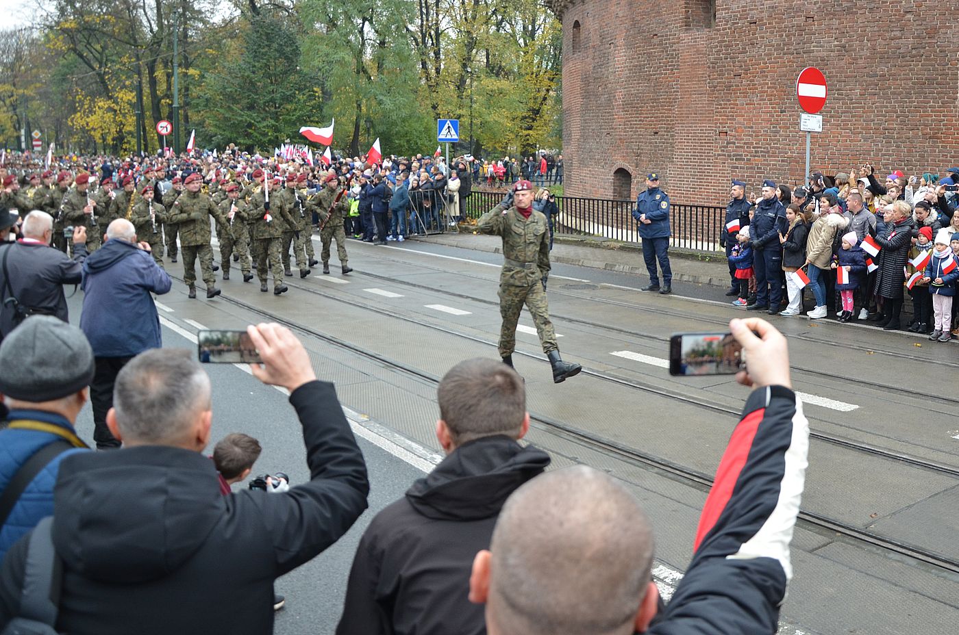 Po mszy świętej w katedrze wawelskiej, odprawionej pod przewodnictwem metropolity krakowskiego abp. Marka Jędraszewskiego, licznie zebrani krakowianie przeszli pod Krzyż Katyński na pl. o. Studzińskiego, gdzie złożono kwiaty. Następnie patriotyczny pochód poprzedzany konnicą przeszedł Drogą Królewską przez Rynek Główny przed Grób Nieznanego Żołnierza na pl. Matejki. Odczytano Apel Pamięci zwieńczony salwą honorową. Wręczono odznaczenia państwowe i akty nadania obywatelstwa polskiego.