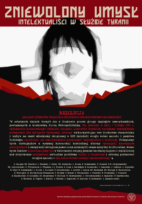 W dniach od 19 do 27 maja na ulicach Krakowa prezentowana jest przygotowana przez krakowski oddział IPN wystawa miejska pt. „Zniewolony umysł. Intelektualiści w służbie tyranii”. Na dwunastu planszach z cytatami zaczerpniętymi z oficjalnych wypowiedzi poetów, pisarzy i intelektualistów przypomniana została w sposób symboliczny problematyka roli słowa i twórczości literackiej w totalitarnym państwie. Nie można zapominać, że to właśnie kłamstwo obok aparatu represji było filarem ustroju komunistycznego w Polsce i zsowietyzowanych krajach Europy Środkowej i Wschodniej.