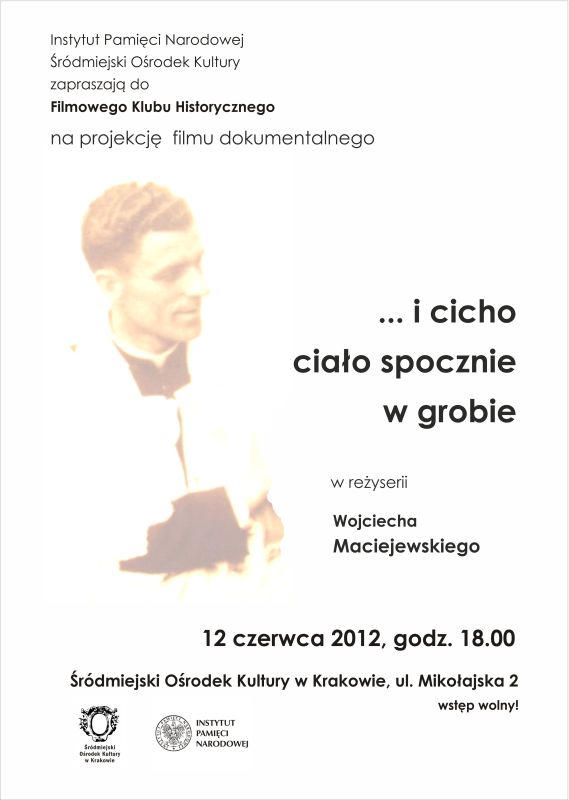 Instytut Pamięci Narodowej i Śródmiejski Ośrodek Kultury w ramach Filmowego Klubu Historycznego zorganizowały projekcję filmu dokumentalnego pt. „...i cicho ciało spocznie w grobie” w reżyserii Wojciecha Maciejewskiego (1999, 57 min). Projekcja odbyła się 12 czerwca 2012 w Śródmiejskim Ośrodku Kultury w Krakowie, ul. Mikołajska 2.