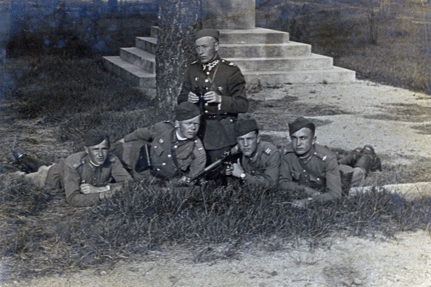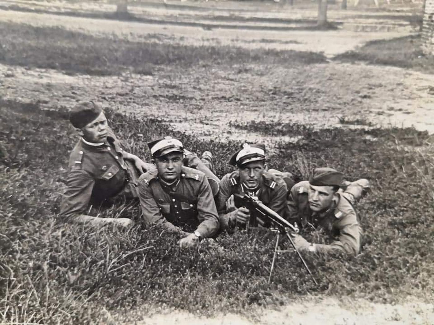 Żołnierze 5. pułku strzelców konnych przy rkm Browning wz. 28. Pierwszy z prawej leży kpr. Ludwik Kawik. Fot. ze zbiorów rodzinnych -