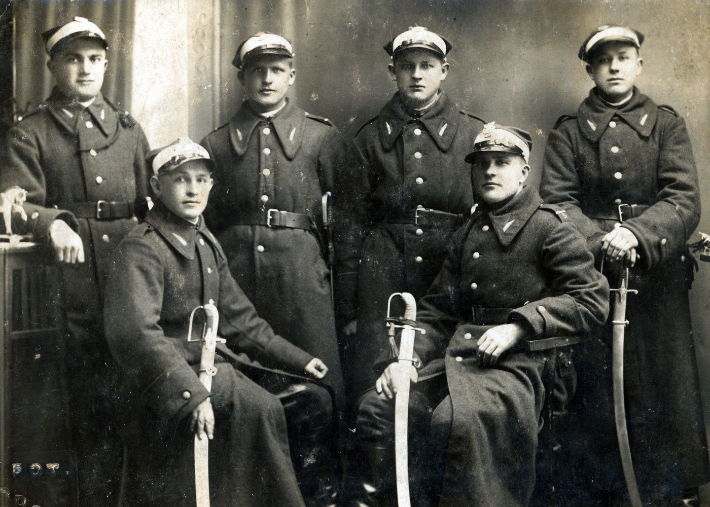Starszy ułan Ludwik Kawik (siedzi z prawej) z kolegami podczas służby w 3. pułku ułanów śląskich. Fot. archiwum rodzinne -