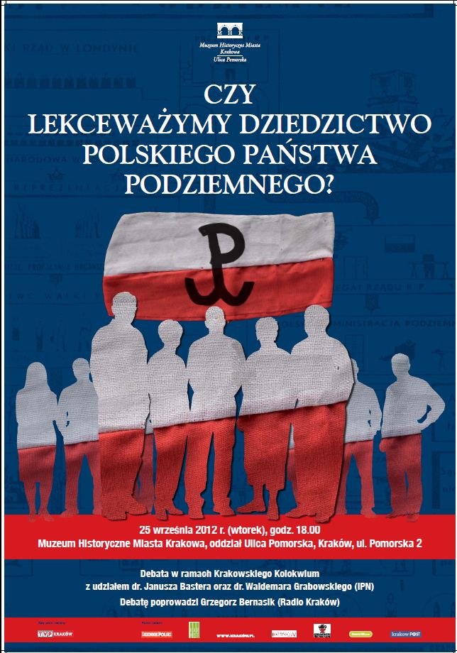 25 września 2012 r. (wtorek) o godz. 18.00 w oddziale Ulica Pomorska Muzeum Historycznego Miasta Krakowa w ramach cyklu „Krakowskie kolokwium” odbyła się debata „Czy lekceważymy dziedzictwo Polskiego Państwa Podziemnego?”