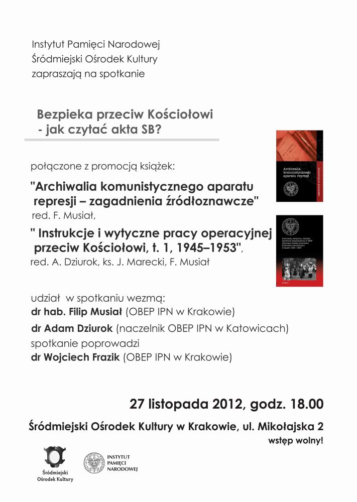 Instytut Pamięci Narodowej i Śródmiejski Ośrodek Kultury zorganizowały spotkanie „Prawda, której nie da się zafałszować. Jak czytać akta SB”, połączone z promocją książek: