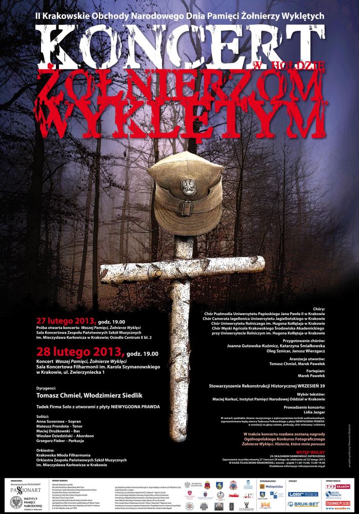Oddział Instytutu Pamięci Narodowej oraz Stowarzyszenie PASSIONART, pragnąc oddać hołd bohaterom oraz przybliżyć sylwetki Żołnierzy Wyklętych młodemu pokoleniu, już po raz drugi zapraszają na koncert w ramach Krakowskich Obchodów Narodowego Dnia Pamięci Żołnierzy Wyklętych. Zrealizowane w zeszłym roku z wielkim rozmachem przedsięwzięcie zgromadziło w Filharmonii im. Karola Szymanowskiego w Krakowie ponad tysiąc osób – widzów i artystów.