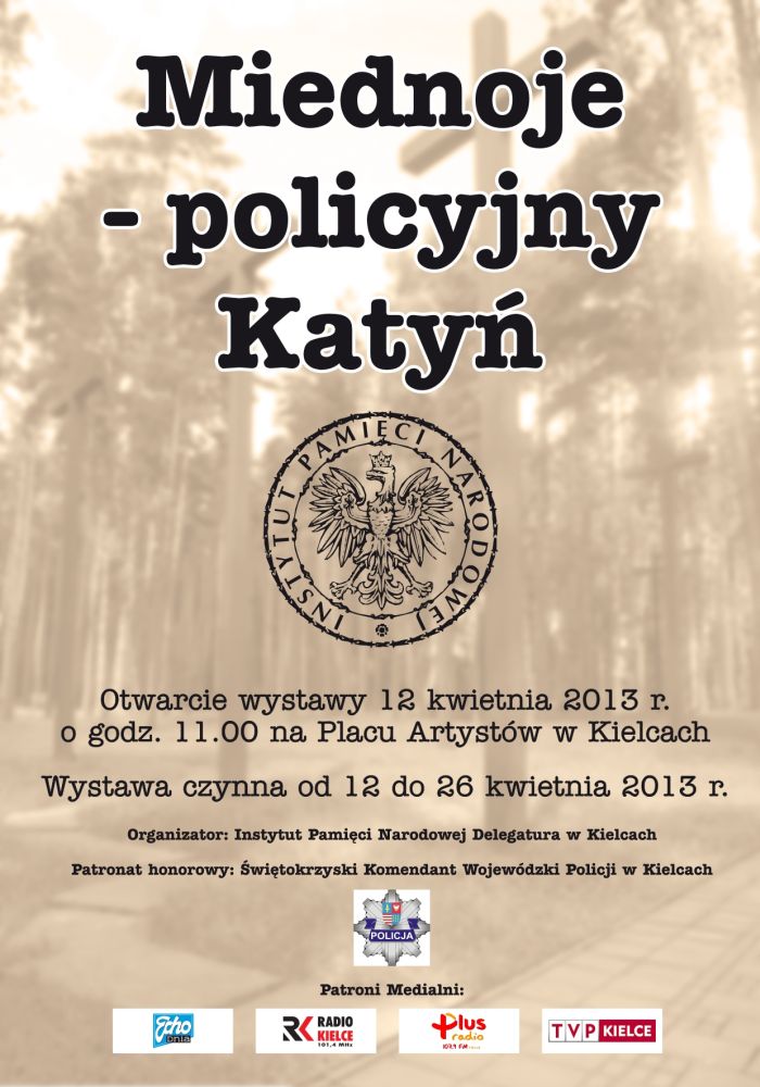 12 kwietnia 2013 r. na Placu Artystów w Kielcach odbył się wernisaż edukacyjnej wystawy plenerowej „Miednoje – policyjny Katyń”, przygotowanej przez Biuro Edukacji Publicznej Delegatury Instytutu Pamięci Narodowej w Kielcach. Patronat honorowy objął Świętokrzyski Komendant Wojewódzki Policji w Kielcach.