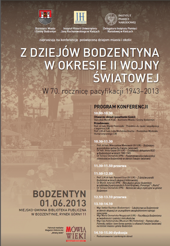 Konferencja naukowa „Z dziejów Bodzentyna w okresie II wojny światowej. W 70. rocznicę pacyfikacji 1943-2013” – Bodzentyn, 1 czerwca 2013