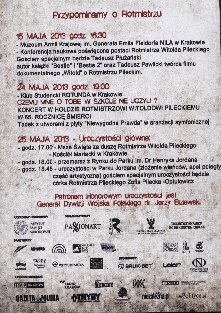 Krakowskie uroczystości w hołdzie Rotmistrzowi Witoldowi Pileckiemu – Kraków, 25 maja 2013 r.