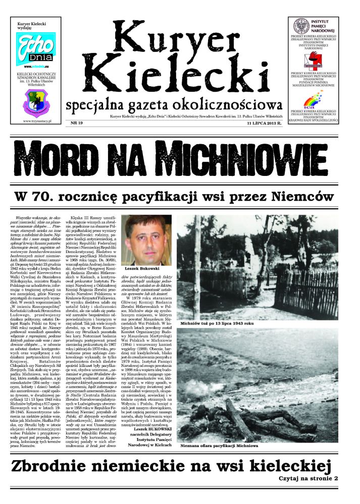 Wydanie „Kuryera Kieleckiego” (dodatku do gazety codziennej „Echo Dnia”) z dnia 11 lipca 2013 r. zostało poświęcone 70. rocznicy pacyfikacji Michniowa. Numer wydany został przez IPN Kielce, Krajową Radę Spółdzielczości, Fundację Pomnik Mauzoleum w Michniowie.