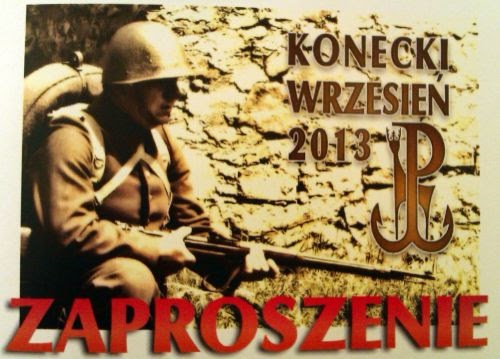 - 12.00–17.00 Konecki wrzesień 2013 – „Pola Chwały” – wystawa plenerowa wyposażenia i uzbrojenia z okresu II wojny światowej (Park Miejski w Końskich)
