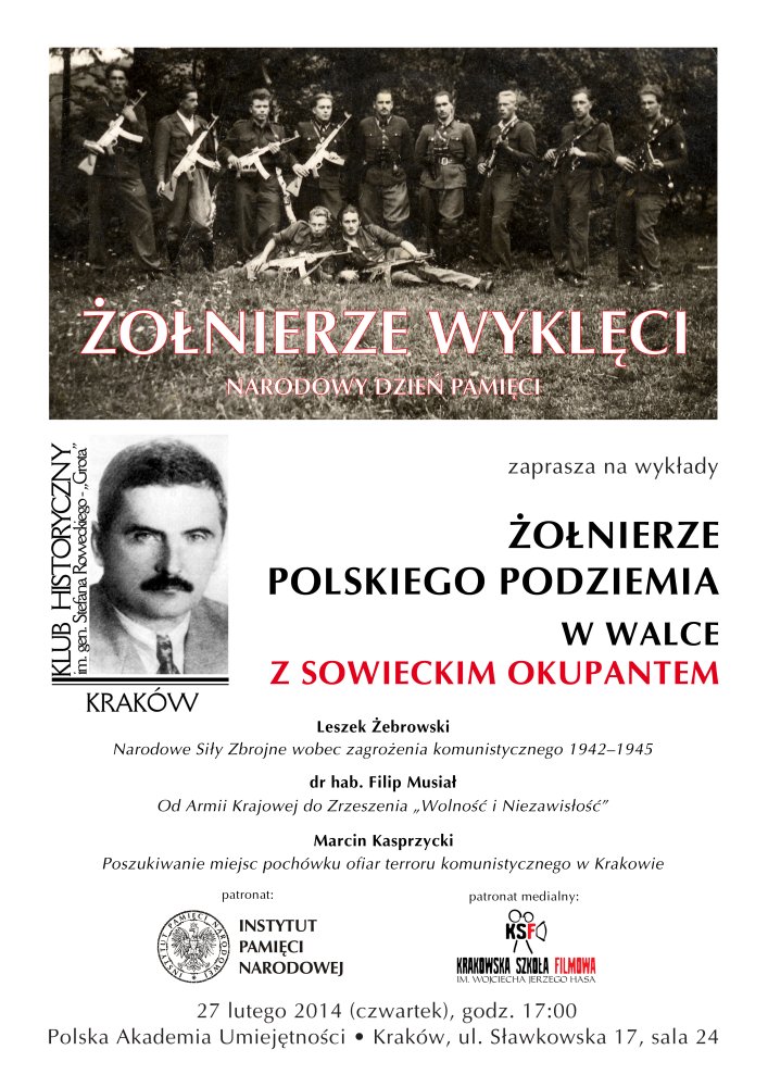 Na spotkaniu Klubu Historycznego im. gen. Stefana Roweckiego „Grota" w Krakowie, które odbyło się 27 lutego 2014 r. w Polskiej Akademii Umiejętności w Krakowie, przy ul. Sławkowskiej 14, zebrani wysłuchali wykładów poświęconych żołnierzom polskiego podziemia w walce z sowieckim okupantem. Spotkanie poprowadziła Anna Kęszycka, a gośćmi Klubu byli: