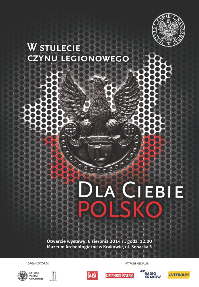 Ekspozycja Dla Ciebie, Polsko. W stulecie czynu legionowego otwarta będzie 6 sierpnia 2014 r., o godz. 12.00, w gmachu Muzeum Archeologicznego w Krakowie, przy ulicy Senackiej 3 i będzie czynna do połowy listopada br.