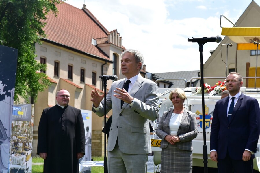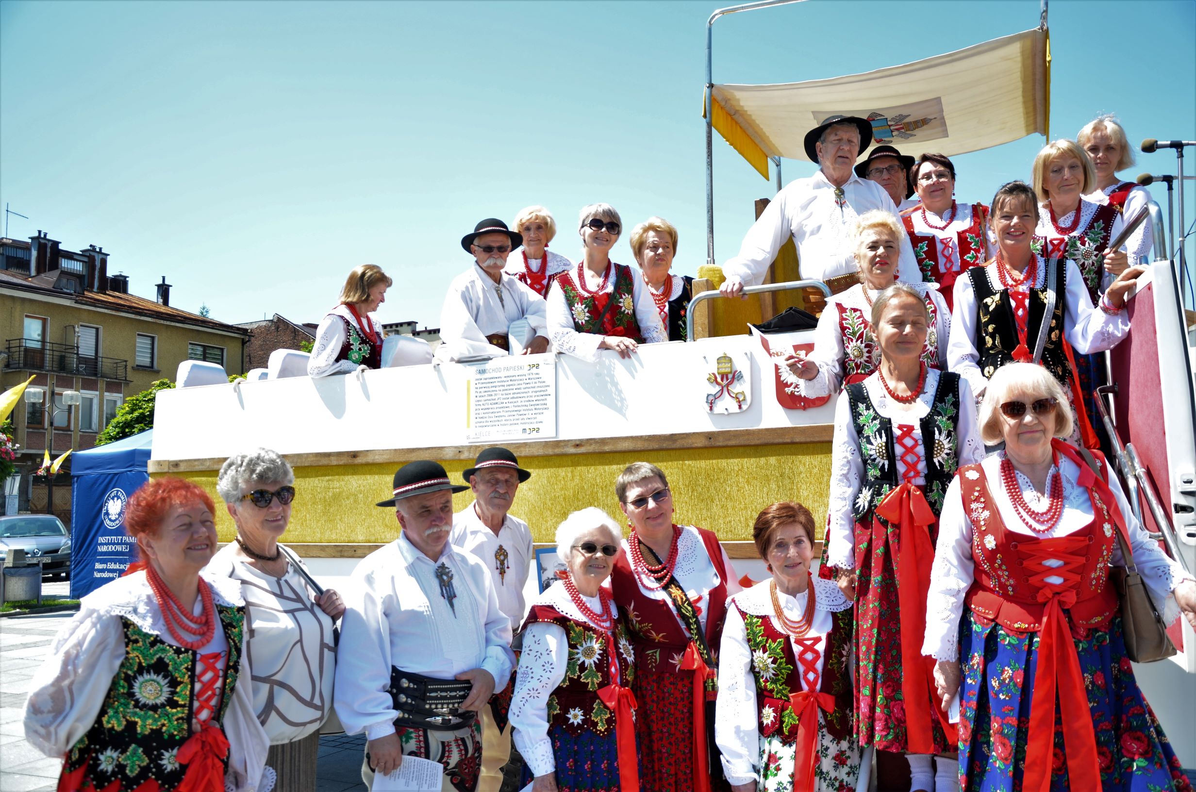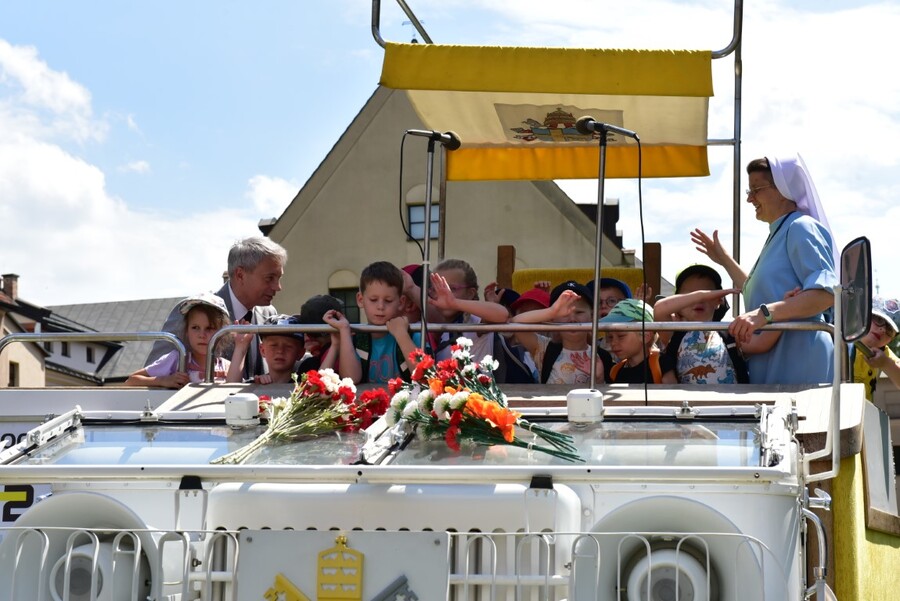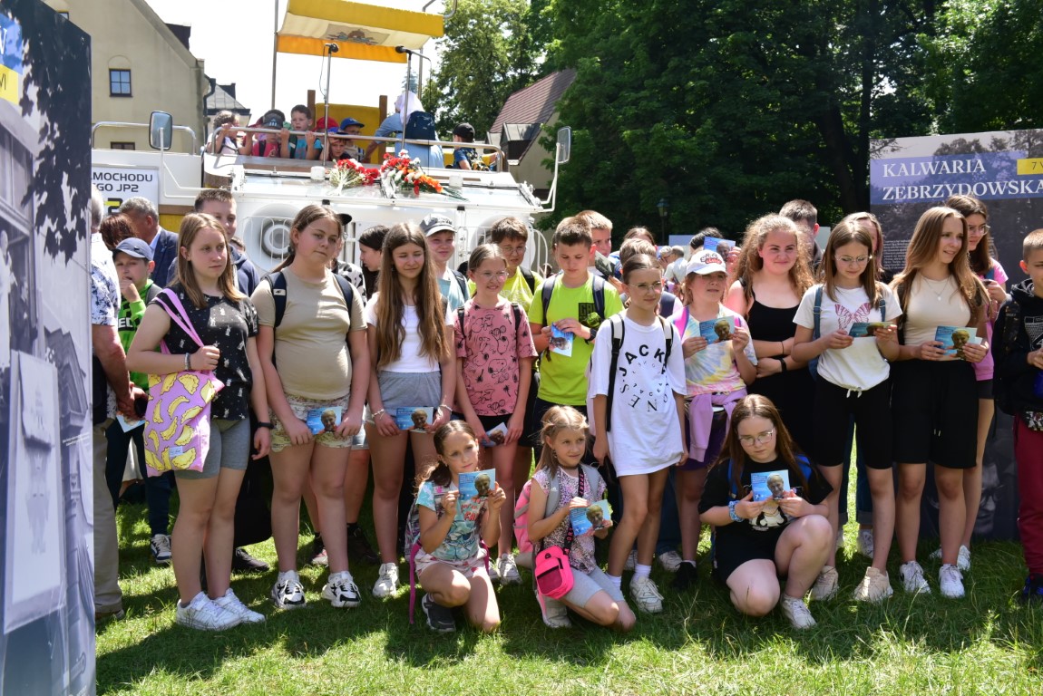 Przybyli goście mieli niezwykłą okazję zobaczyć z bliska wierną rekonstrukcję papamobile, zbudowaną z oryginalnych części, która jest prezentowana na stałe w Muzeum Samochodu Papieskiego JP2 w Kielcach.