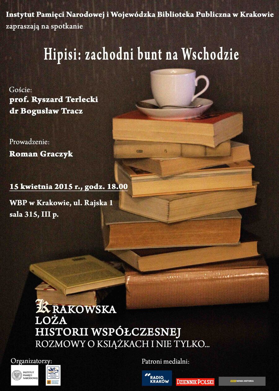Instytut Pamięci Narodowej oraz Wojewódzka Biblioteka Publiczna w Krakowie zapraszają na spotkanie „Hipisi: zachodni bunt na Wschodzie”. W dyskusji udział wezmą prof. Ryszard Terlecki oraz dr Bogusław Tracz. Spotkanie poprowadzi Roman Graczyk.