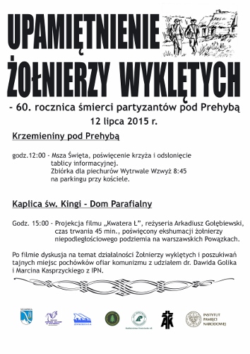 12 lipca, o godzinie 12.00, odprawiona zostanie uroczysta Msza św. w Lesie Krzemieniny nad Szczawnicą – w miejscu śmierci Stanisława Perełki „Dębińskiego” i Józefa Walkosza „Buka”, żołnierzy niezłomnych z ostatniej działającej w Małopolsce tzw. grupy przetrwania. Po Mszy św. poświęcony zostanie krzyż oraz odsłonięta tablica informacyjna, dotycząca wydarzeń z 10 lipca 1955 r.