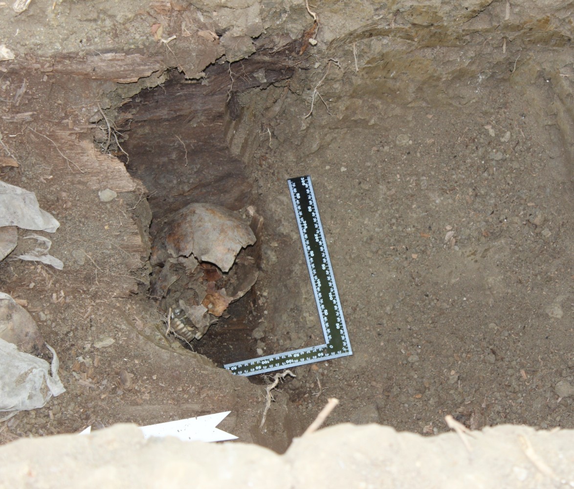 W toku przeprowadzonych prac poszukiwawczo-archeologicznych natrafiono na szczątki mężczyzny, które zostały podjęte. W trakcie oględzin czaszki natrafiono na ślady po kuli karabinowej, wskazujące na wykonanie wyroku metodą katyńską. Pobrano także materiały DNA do identyfikacji szczątków. Wyniki ekspertyz zostaną przekazane opinii publicznej w najbliższym możliwym terminie.