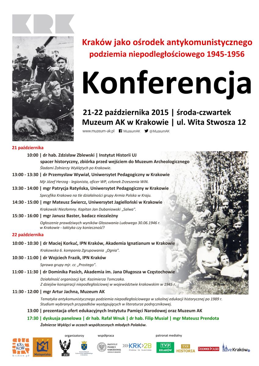 Konferencja „Kraków jako ośrodek antykomunistycznego podziemia niepodległościowego 1945–1956” – Kraków, 21–22 października 2015