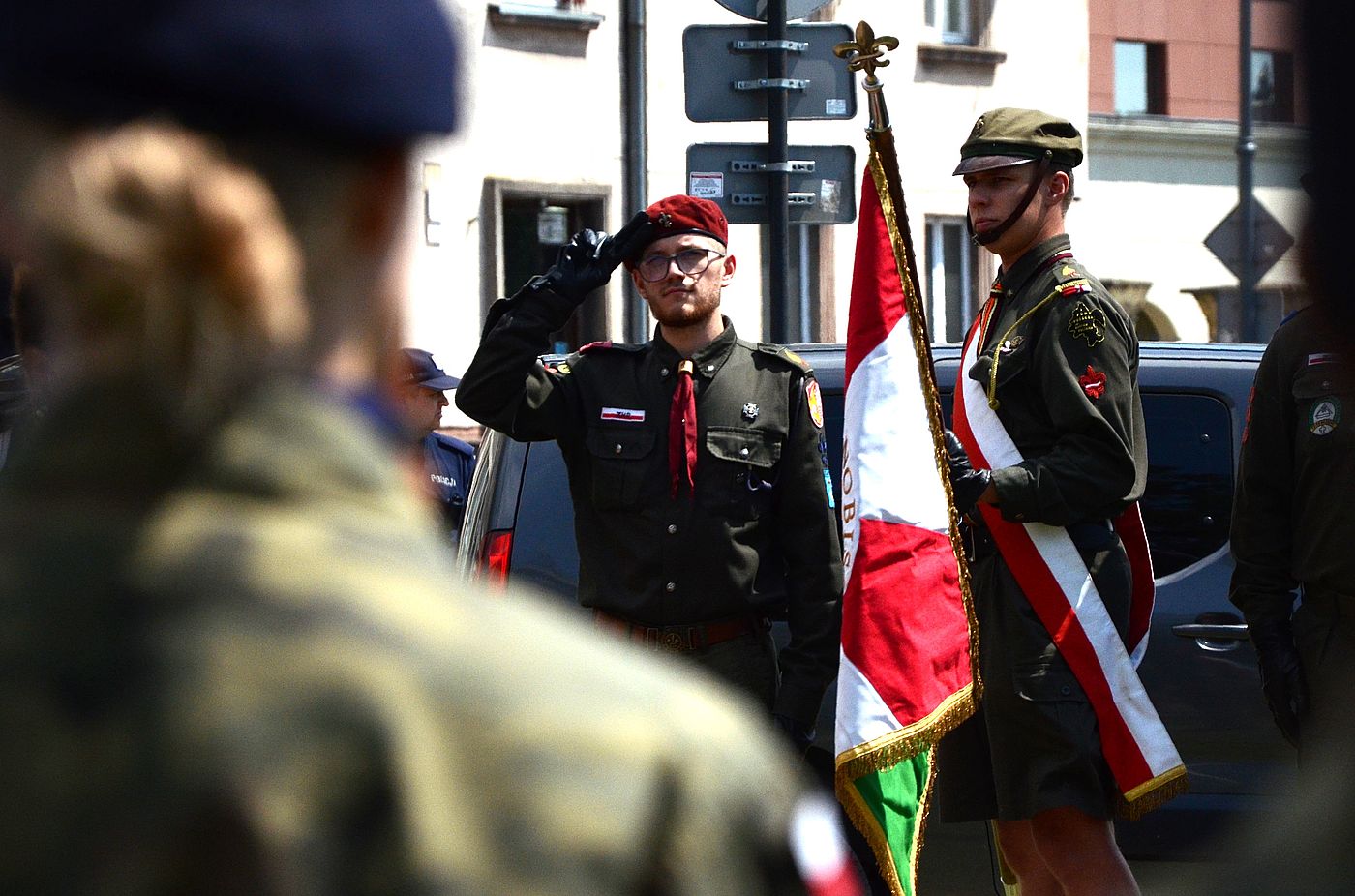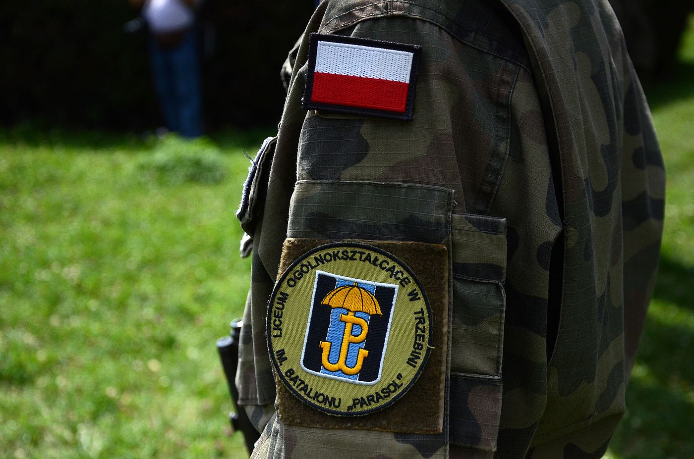 Po uroczystościach na ul. Powiśle młodzież z klas mundurowych Liceum im. batalionu „Parasol” w Trzebini dała pokaz musztry paradnej.