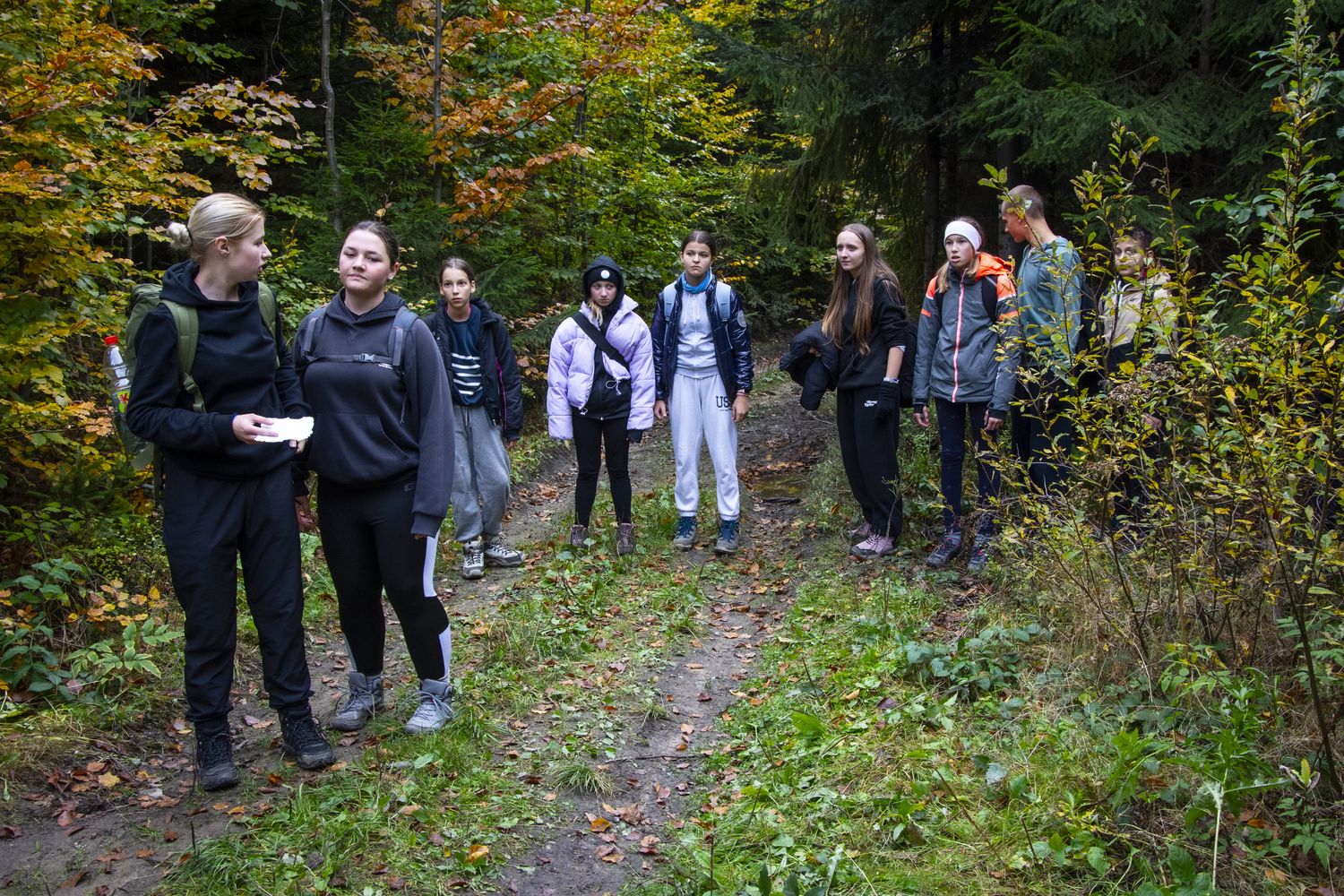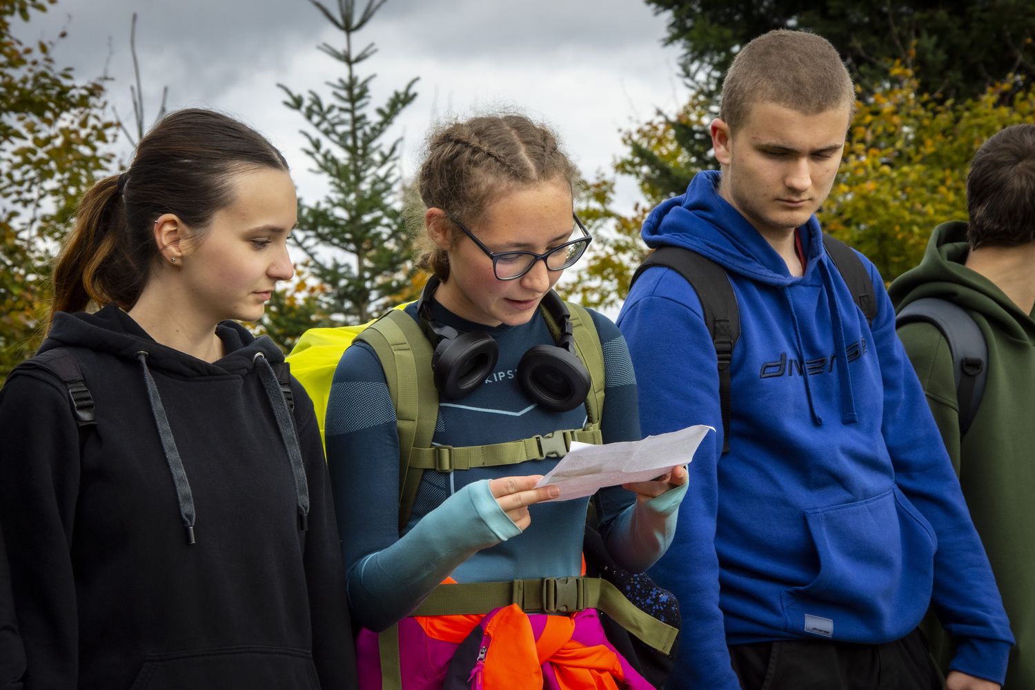 Następnie młodzież docierała niebieskim szlakiem na Beskid (766 m n.p.m.), gdzie wykazywała się wiedzą o broni z okresu II wojny światowej. Dalej, unikając niemieckich patroli granicznych, patrole docierały przez Łysą Górę (808), Przełęcz nad Harkabuzem na „Trzy Kamienie” w Bukowinie Osiedlu, gdzie znajduje się upamiętnienie szlaków kurierskich „Szkoły”.