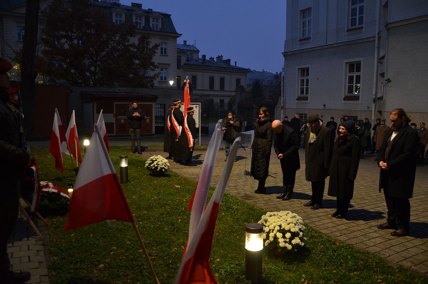 Po mszy świętej zebrani przeszli pod tablicę pamięci na ścianie willi Zofijówka przy ul. Kopernika 26. Sfinansowana przez IPN i odsłonięta w 2019 r. tablica upamiętnia aresztowanie 10 listopada 1939 r. przez Niemców 25 jezuitów z Kolegium Krakowskiego. Akcja okupantów była częścią działań wymierzonych w polską inteligencję, podobnych do Sonderaktion Krakau na UJ.
