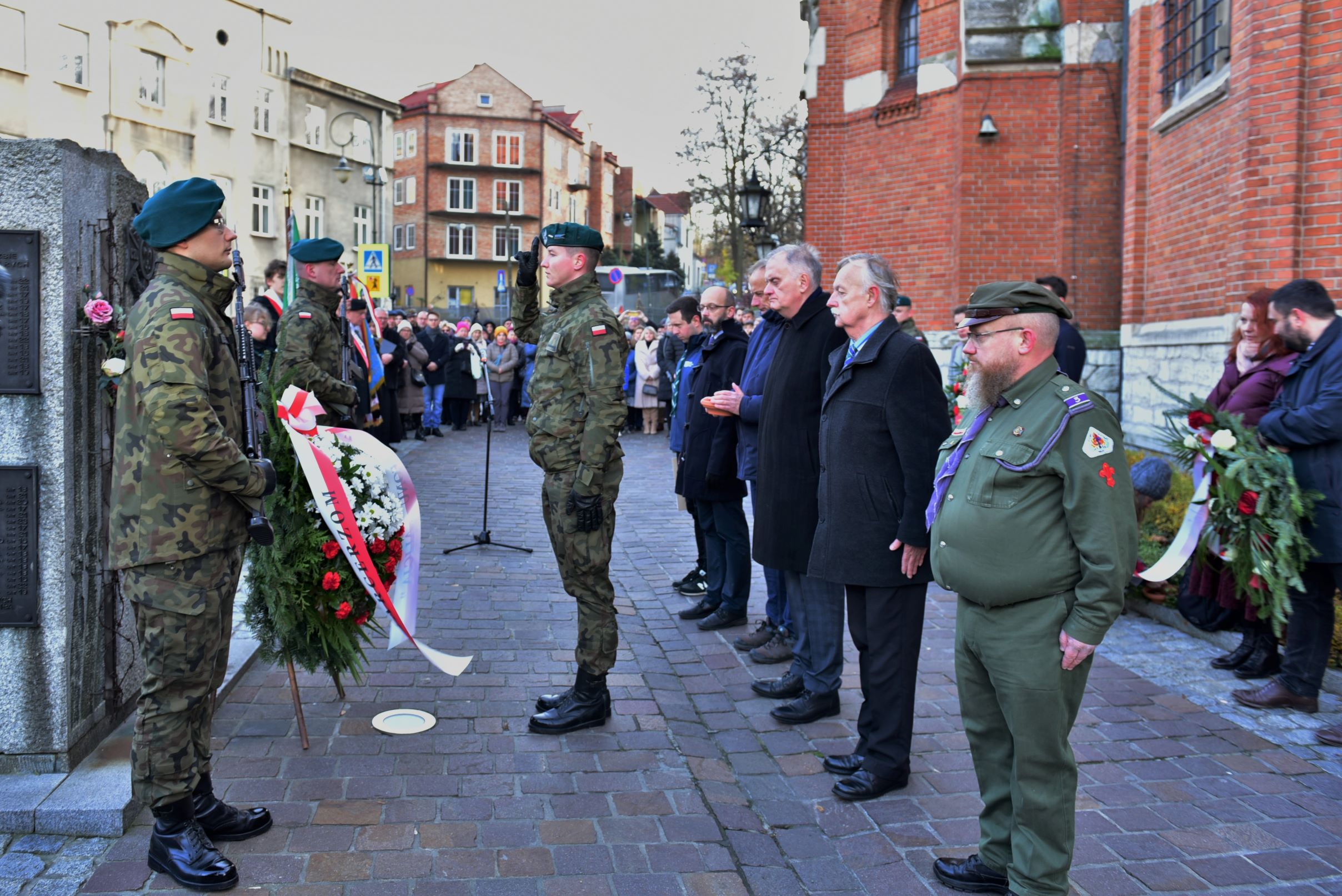 Uroczystości rozpoczęła msza święta, po której zebrani przeszli pod pomnik znajdujący się koło kościoła, gdzie odczytano Apel Poległych. Głos zabrał m.in. dr Michał Wenklar, zastępca dyrektora krakowskiego oddziału IPN, który również odczytał list od Władysława Kosiniaka-Kamysza, wicepremiera, ministra obrony narodowej, skierowany do uczestników wydarzenia. Na koniec delegacje złożyły kwiaty.
