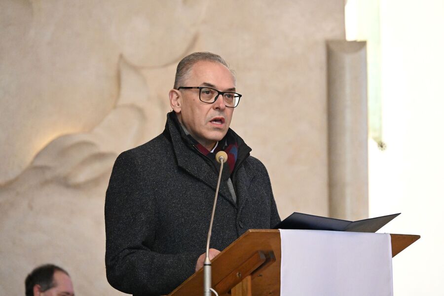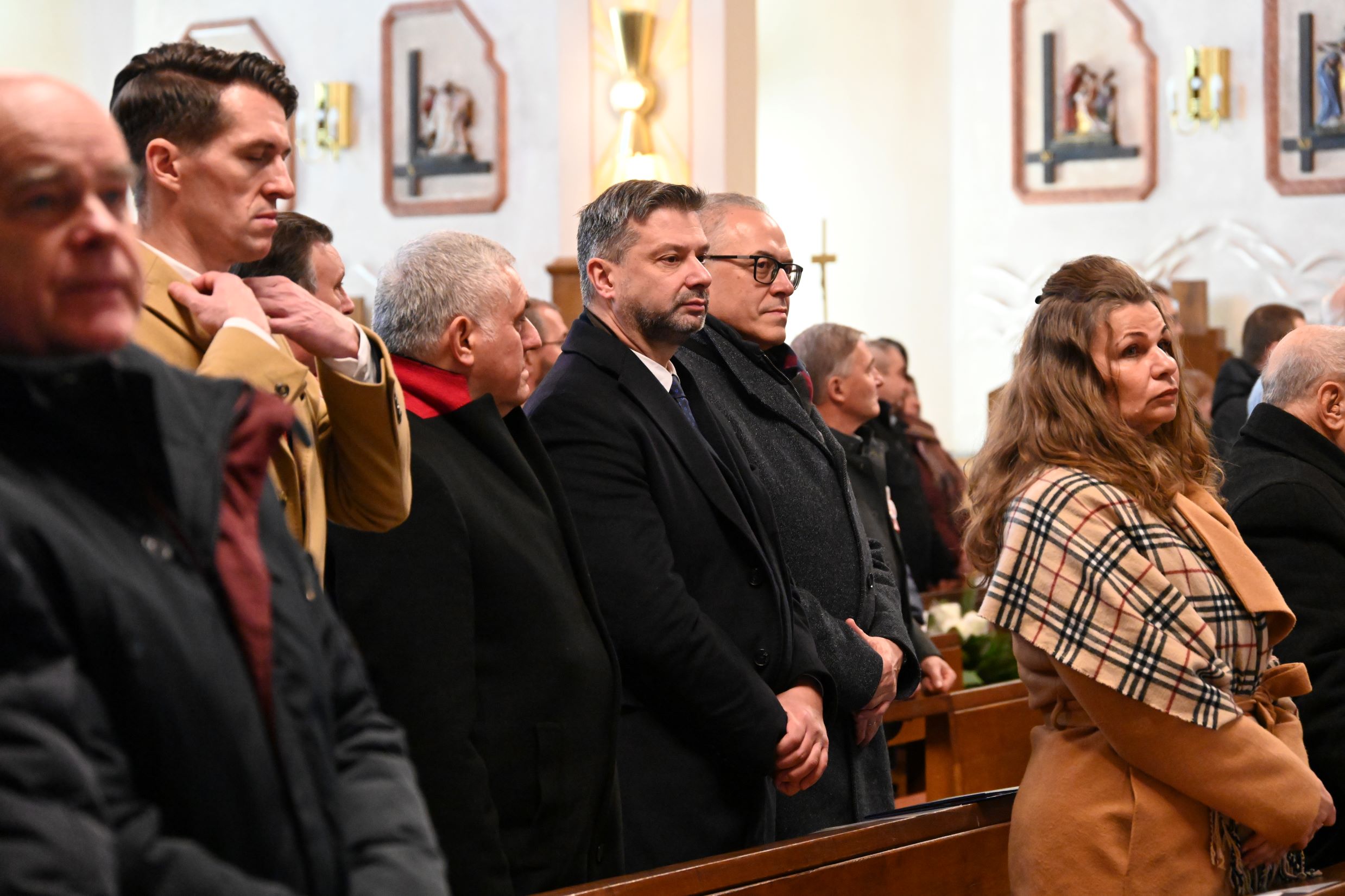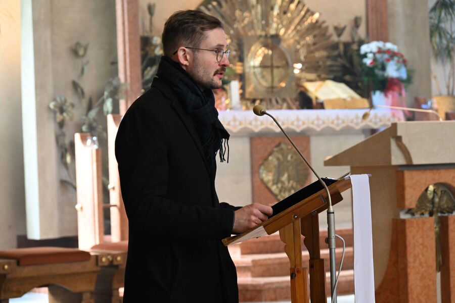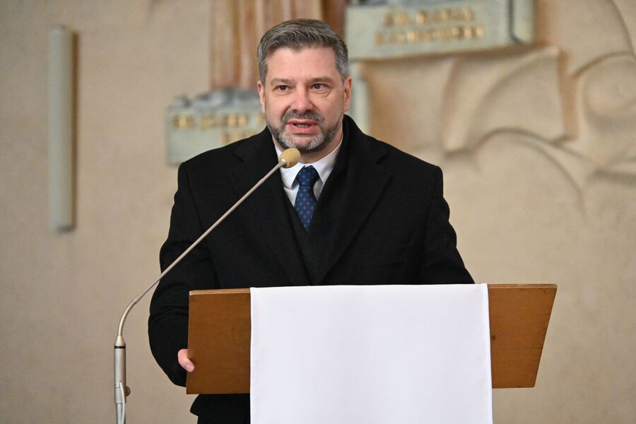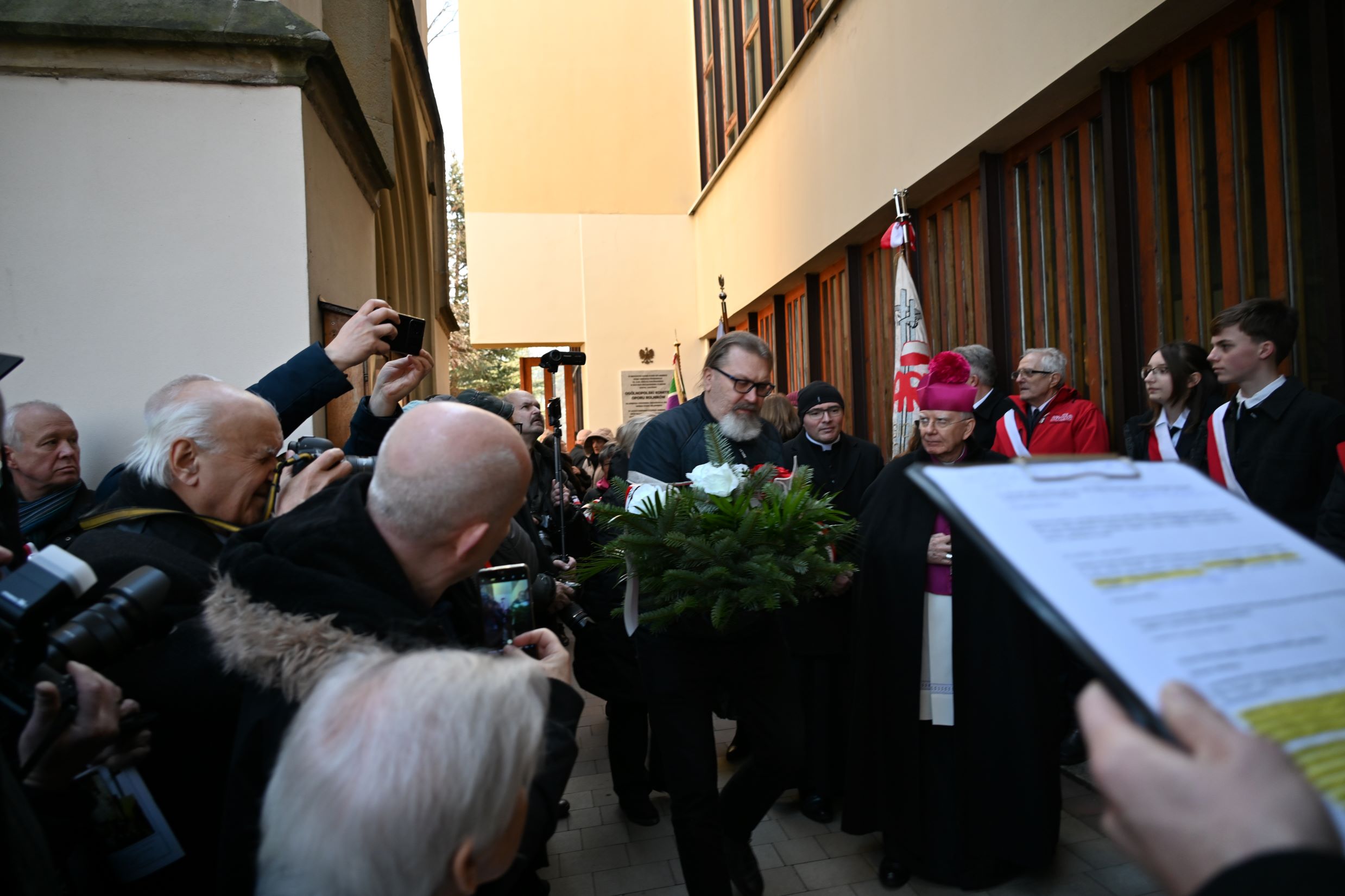 Następnie uczestnicy przeszli przed wejście do kościoła, gdzie abp Marek Jędraszewski poświęcił tablicę. Odsłonięcia upamiętnienia umieszczonego na elewacji świątyni dokonali reprezentujący uczestników głodówki Anna Pietras i Kazimierz Pająk oraz dr hab. Filip Musiał.