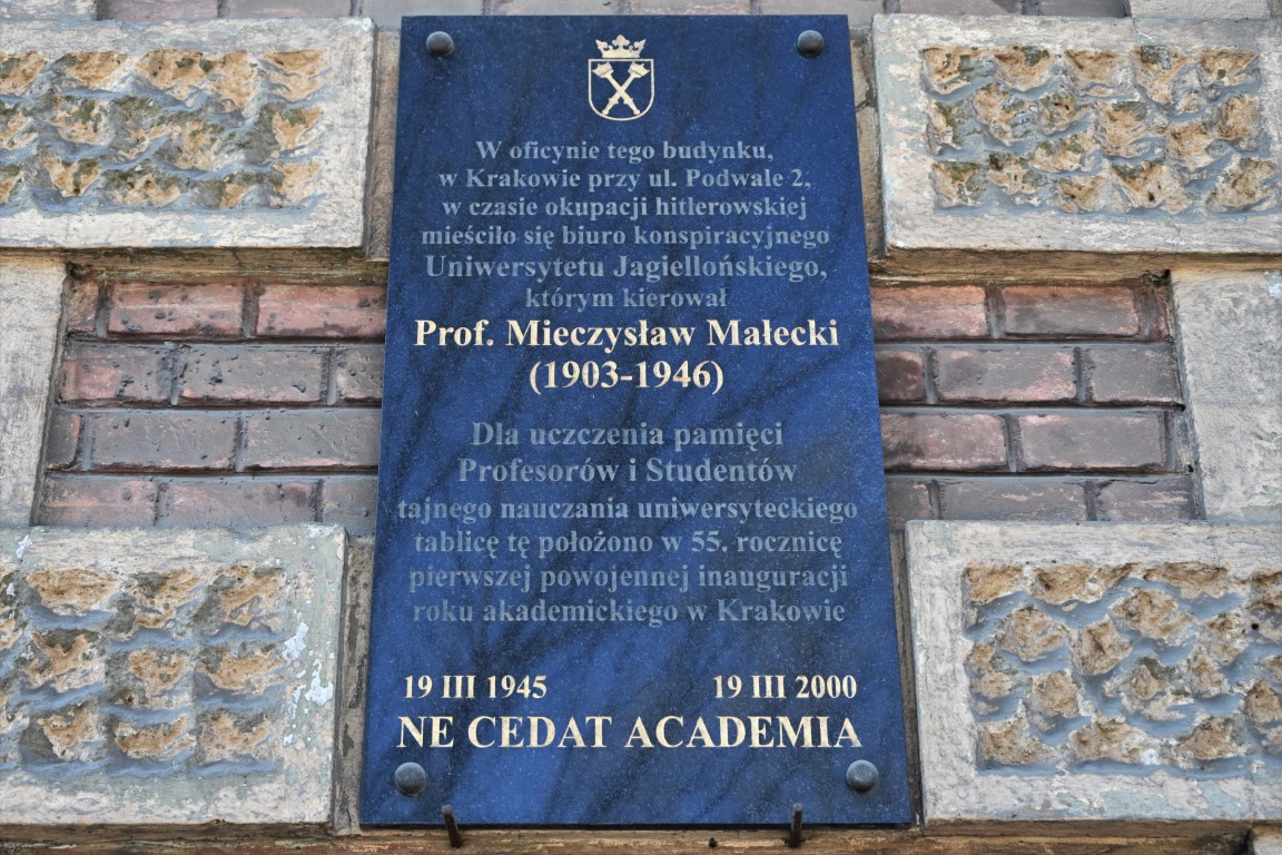 Po pobycie w niemieckich obozach koncentracyjnych Sachsenhausen i Dachau, na przełomie 1940 i 1941 r. do Krakowa wróciła grupa młodszych profesorów, aresztowanych w Sonderaktion Krakau. Zapadła decyzja o zorganizowaniu tajnego nauczania. Zadanie powierzono prof. Mieczysławowi Małeckiemu. Podczas wojny zajęcia organizowane w prywatnych mieszkaniach, w tajemnicy przed Niemcami, objęły około tysiąca studentów. Studiowali m.in. medycynę, prawo i polonistykę. Na tajnym wydziale teologicznym studiował Karol Wojtyła. Dzięki tak masowej akcji już dwa miesiące po opuszczeniu Krakowa przez niemieckich okupantów udało się zorganizować pierwszą po wojnie inaugurację roku akademickiego na UJ.