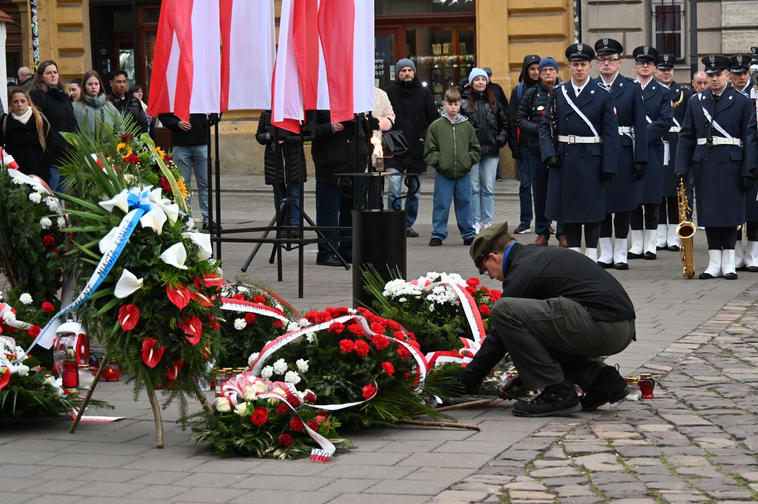 – Składamy hołd ponad 22 tysiącom polskich oficerów, przedstawicieli służb mundurowych, zamordowanych przez Sowietów w czasie ludobójstwa katyńskiego. Odwołujemy się do tego, jako do zbrodni wojennej, która została dokonana na jeńcach, wbrew wszelkim umowom międzynarodowym. Ale nie możemy zapominać, że mówimy o wymordowanej elicie. O ludziach, którzy w znaczącej większości byli oficerami i podoficerami rezerwy, a więc w cywilu byli nauczycielami, lekarzami, naukowcami. Byli państwowotwórczą elitą, budującą niepodległą II Rzeczpospolitą – powiedział w swoim wystąpieniu dyrektor Oddziału IPN w Krakowie dr hab. Filip Musiał.