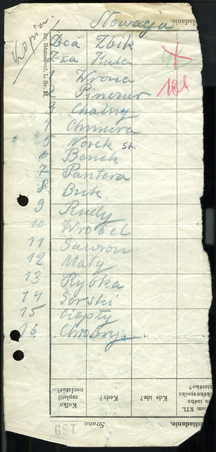 Spis partyzantów wysłanych na patrol na teren Czechosłowacji, wymieniający m.in. Stanisława Klapera „Ciepłego”. Fot. ze zbiorów IPN -