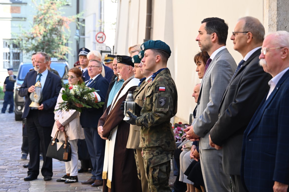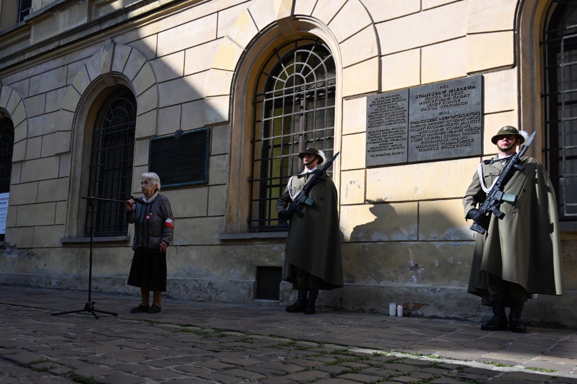 – Odnosimy się dzisiaj do ludzi, którzy reprezentowali świat wartości, przeciwko tym, którzy reprezentowali świat „antywartości”, jaki usiłowali wprowadzić tu komuniści. Odwołujemy się do ludzi, dla których Polska była najważniejsza. Oni wiedzieli, że przed przywilejami i prawami są obowiązki wobec ojczyzny. Ale wśród tych kilkunastu osób skazanych 78 lat temu, szczególną pamięcią otaczamy te trzy, które zostały w konsekwencji komunistycznego wyroku zamordowane. W sposób szczególny otaczamy pamięcią Alojzego Kaczmarczyka, Józefa Ostafina i Waleriana Tumanowicza. – powiedział w przemówieniu dr hab. Filip Musiał, dyrektor krakowskiego IPN.