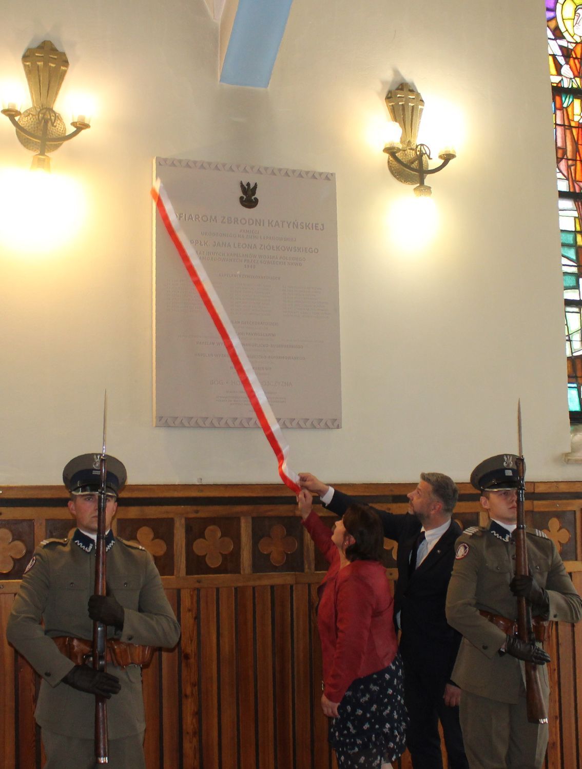 Ceremonia odsłonięcia i poświęcenia tablicy odbyła się 14 września 2025 r. w kościele parafialnym w Łapanowie, skąd pochodził jeden z kapłanów – ks. ppłk Jan Leon Ziółkowski (1889-1940), kapłana archidiecezji krakowskiej, starszy kapelan służby stałej Wojska Polskiego i Korpusu Ochrony Pogranicza (1919-1940).