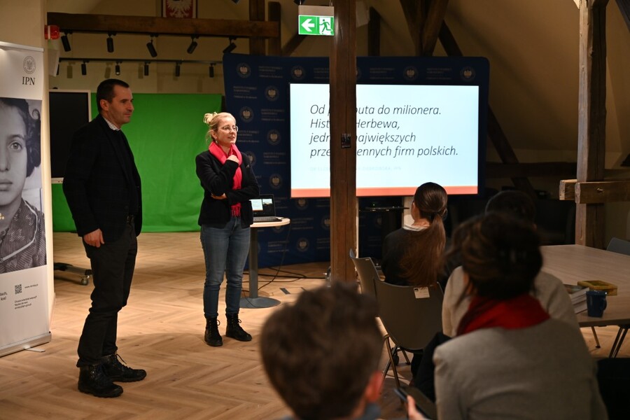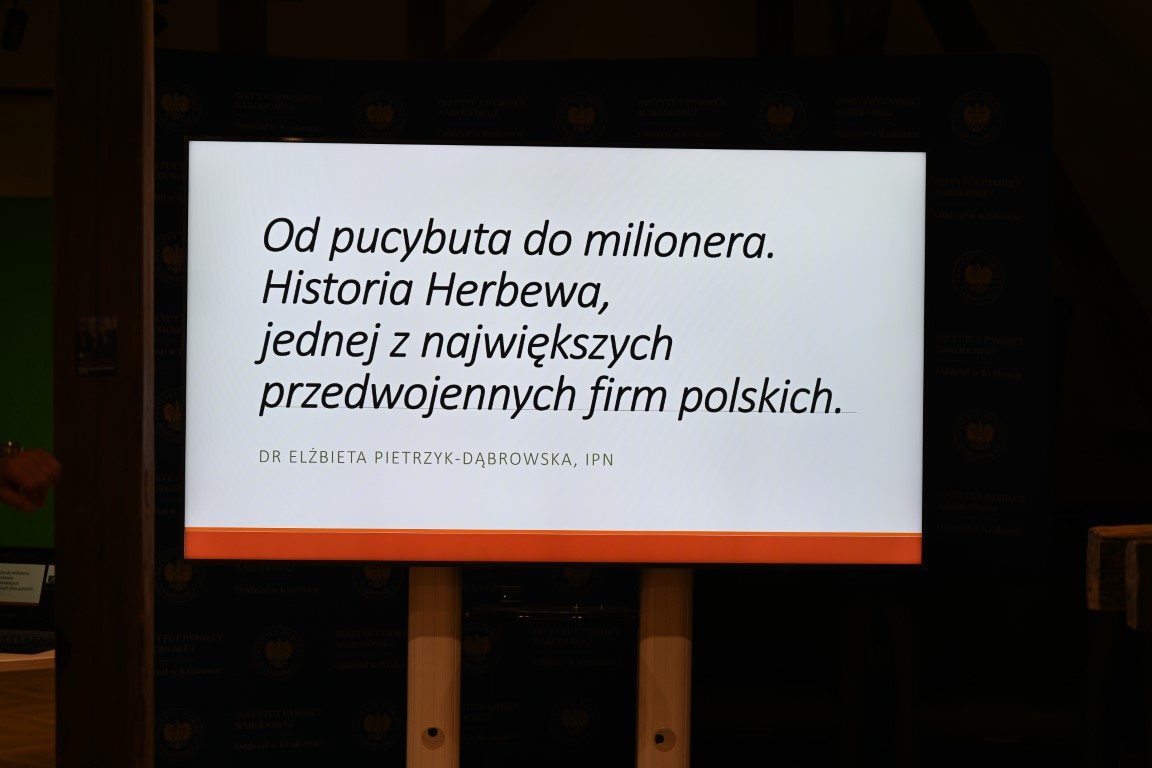 13 stycznia 2026 r. na poddaszu krakowskiej siedziby Oddziału IPN odbyło się seminarium historyczne pt. „Od pucybuta do milionera. Historia Herbewo, jednej z największych przedwojennych polskich firm“. Studentom historii Uniwersytetu Jagiellońskiego, Uniwersytetu Papieskiego Jana Pawła II oraz Uniwersytetu Komisji Edukacji Narodowej temat przedstawiła dr Elżbieta Pietrzyk-Dąbrowska.